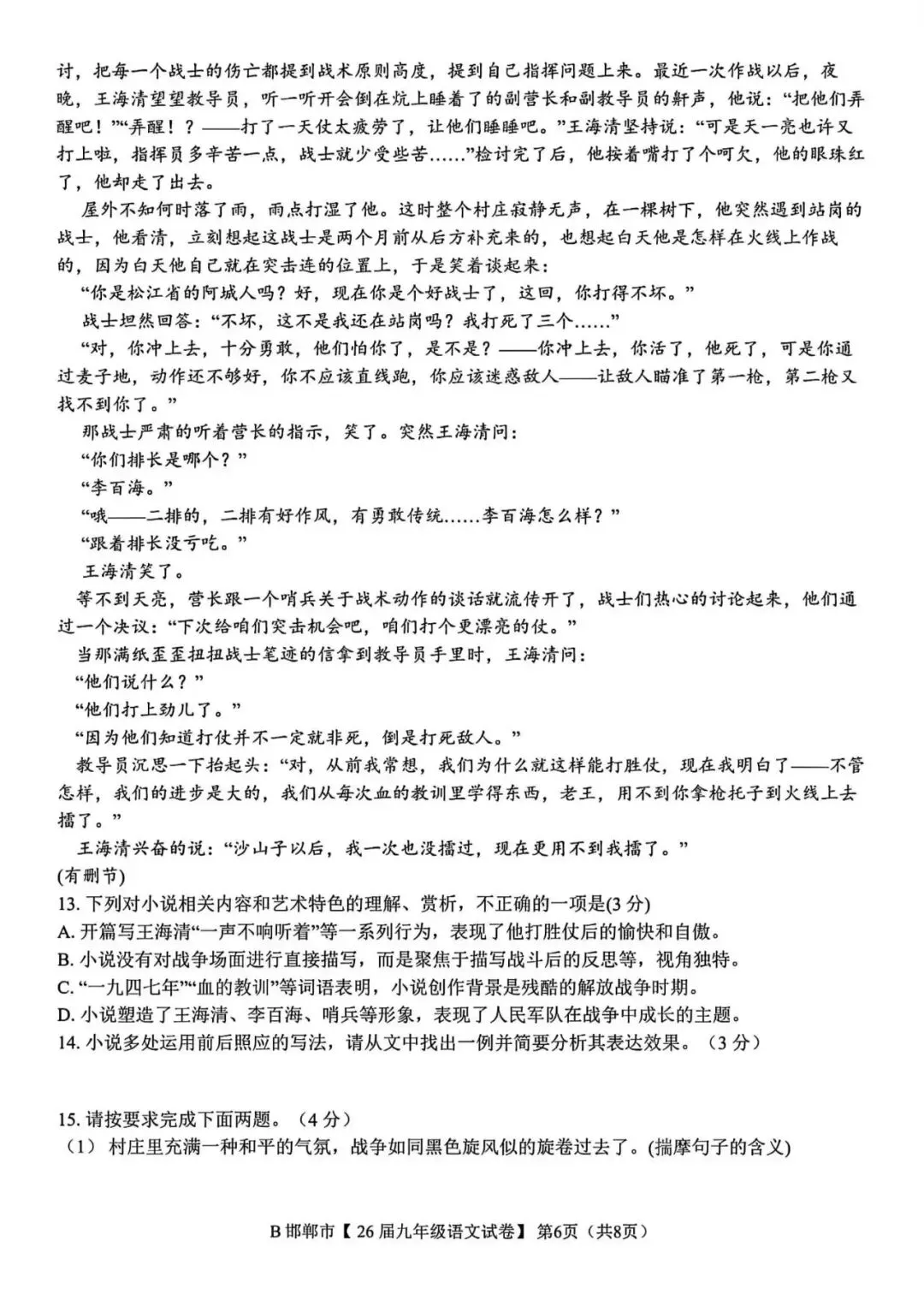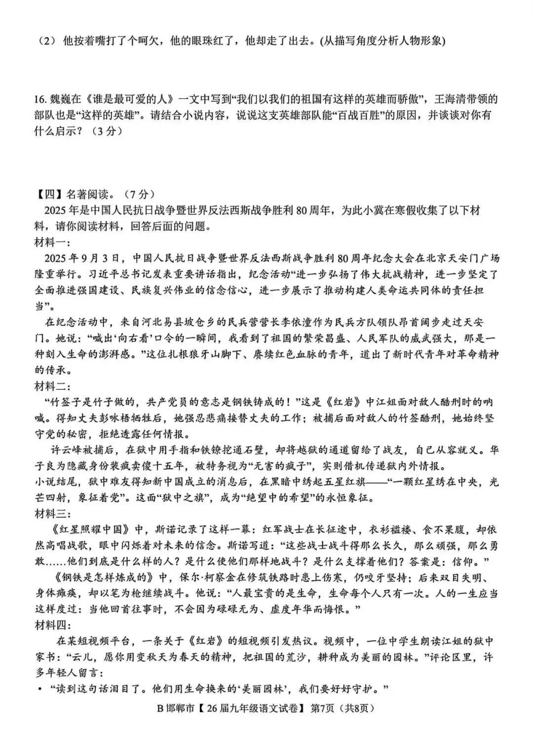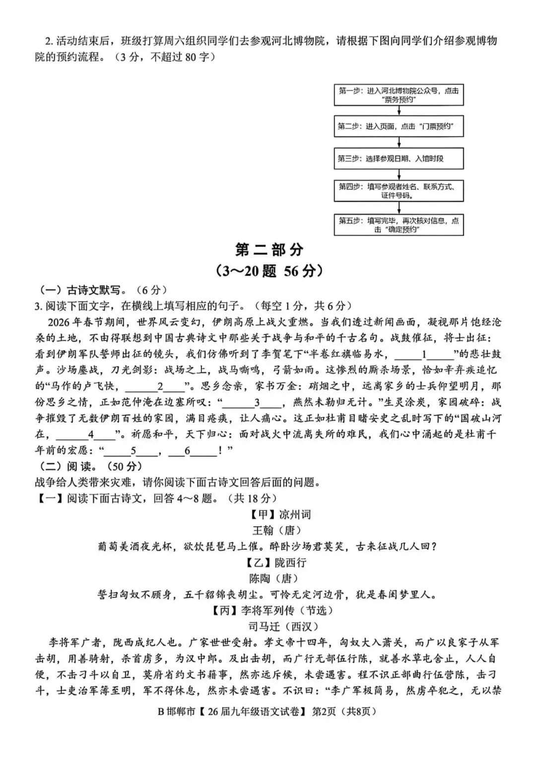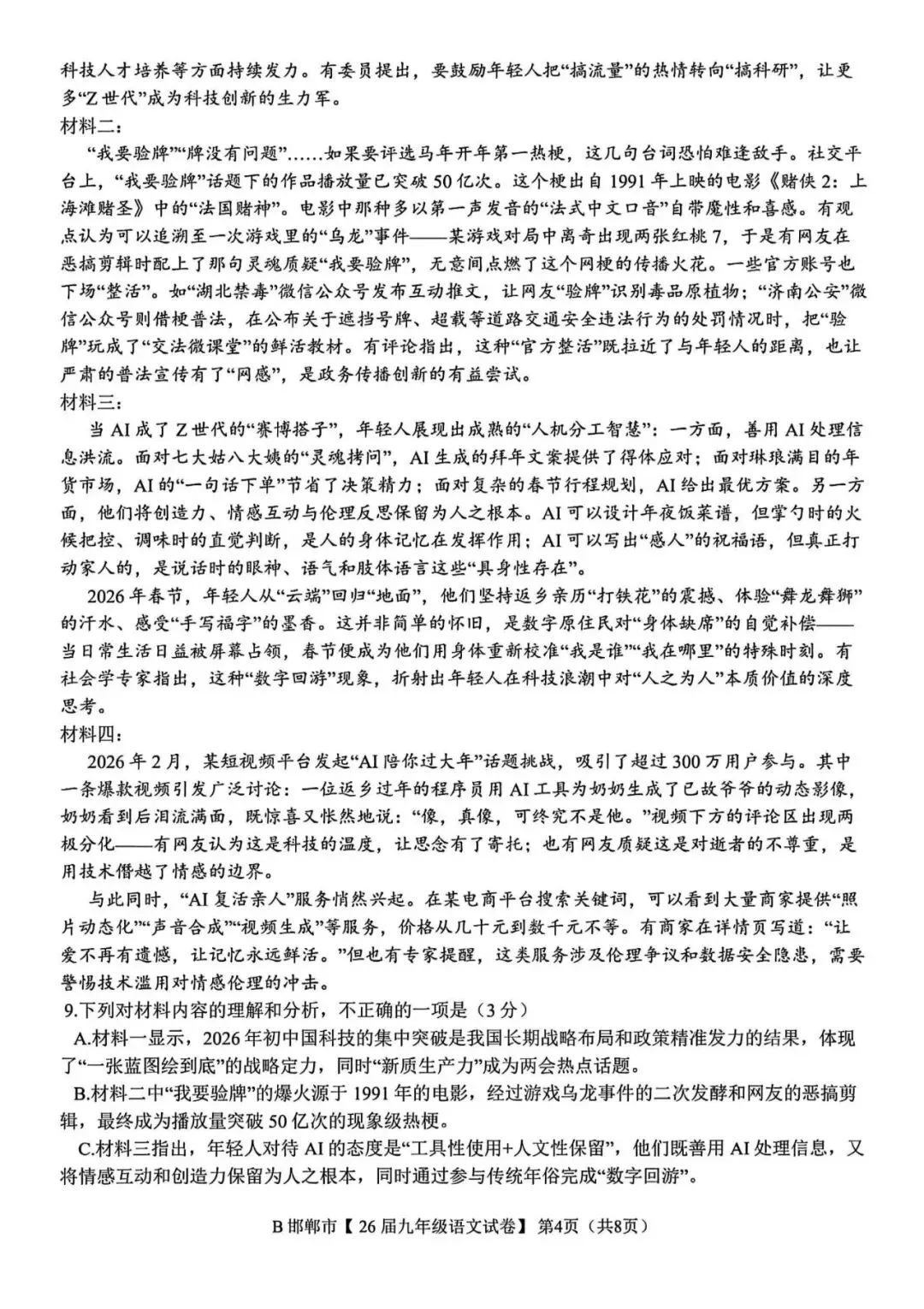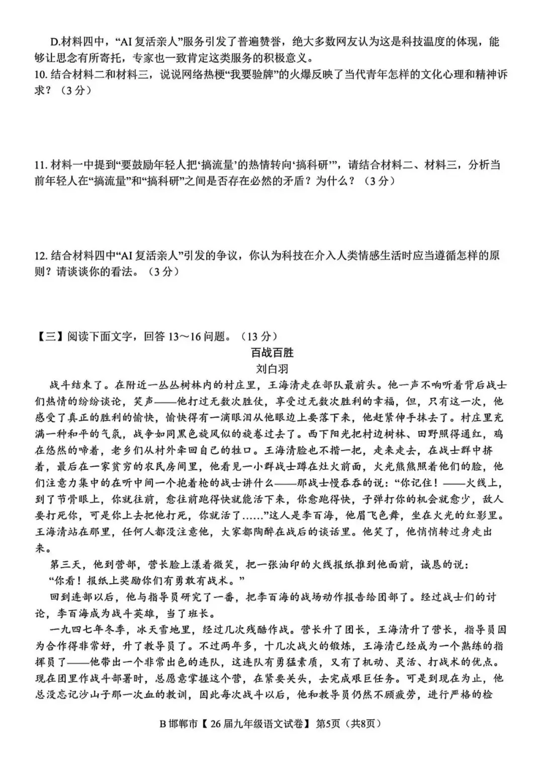 >2026年邯郸市九年级百校联考语文试卷(含答案)