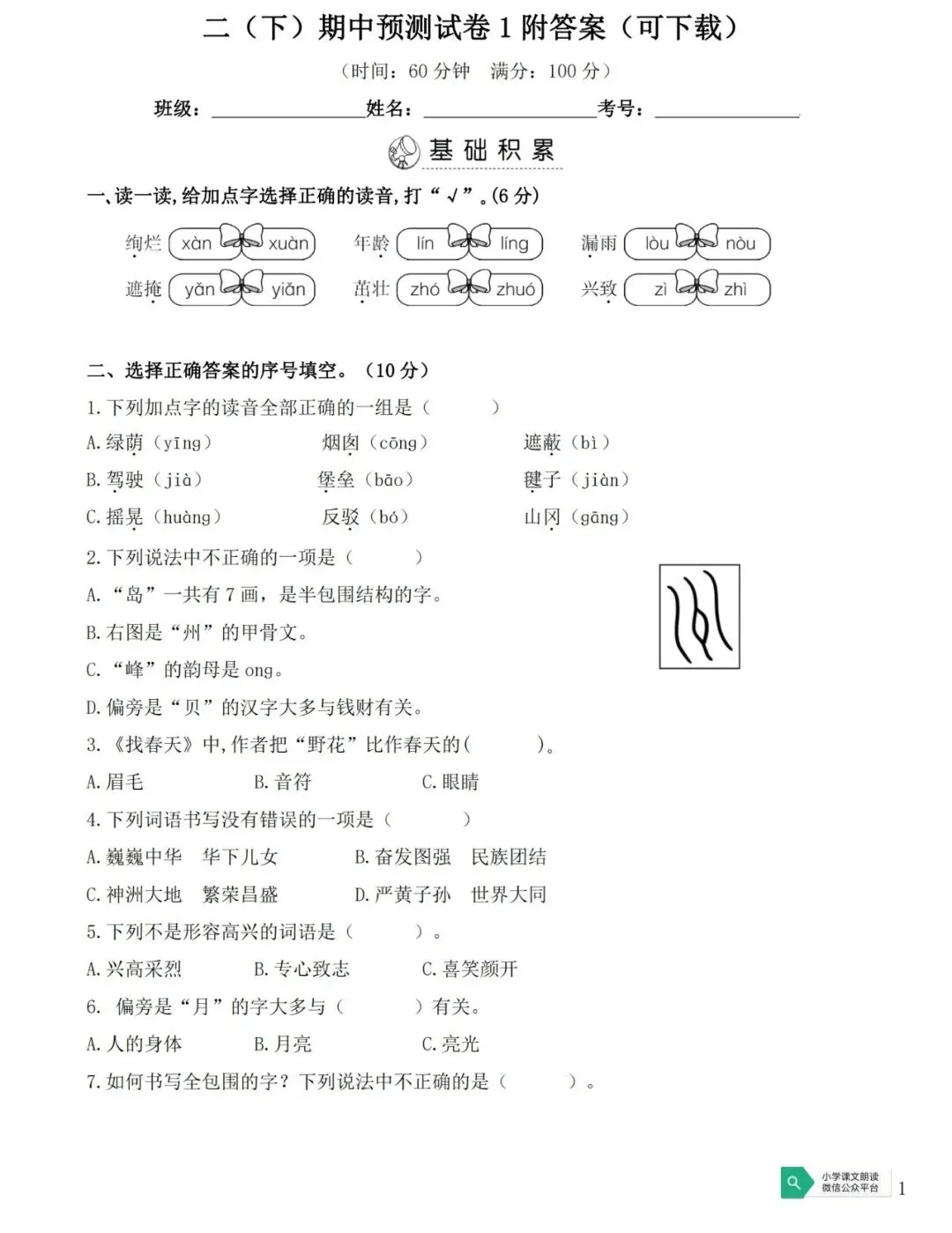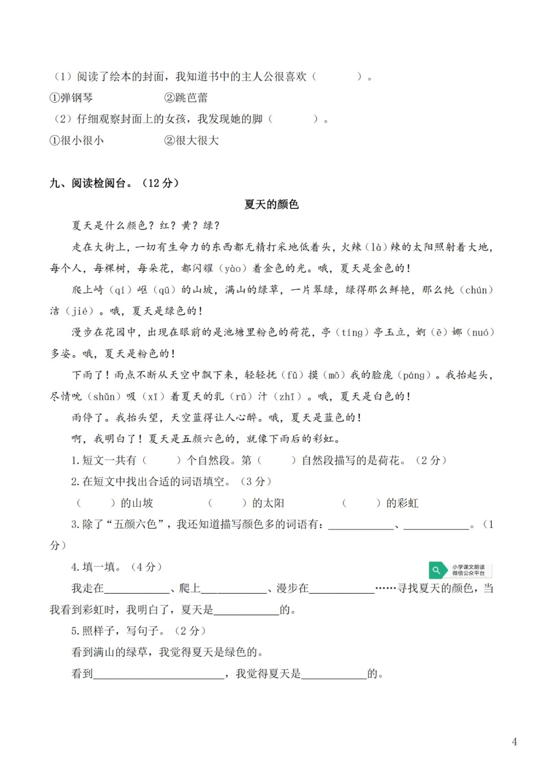 二年级(下)第四单元测试卷1温馨提示:点击文末阅读原文可下载