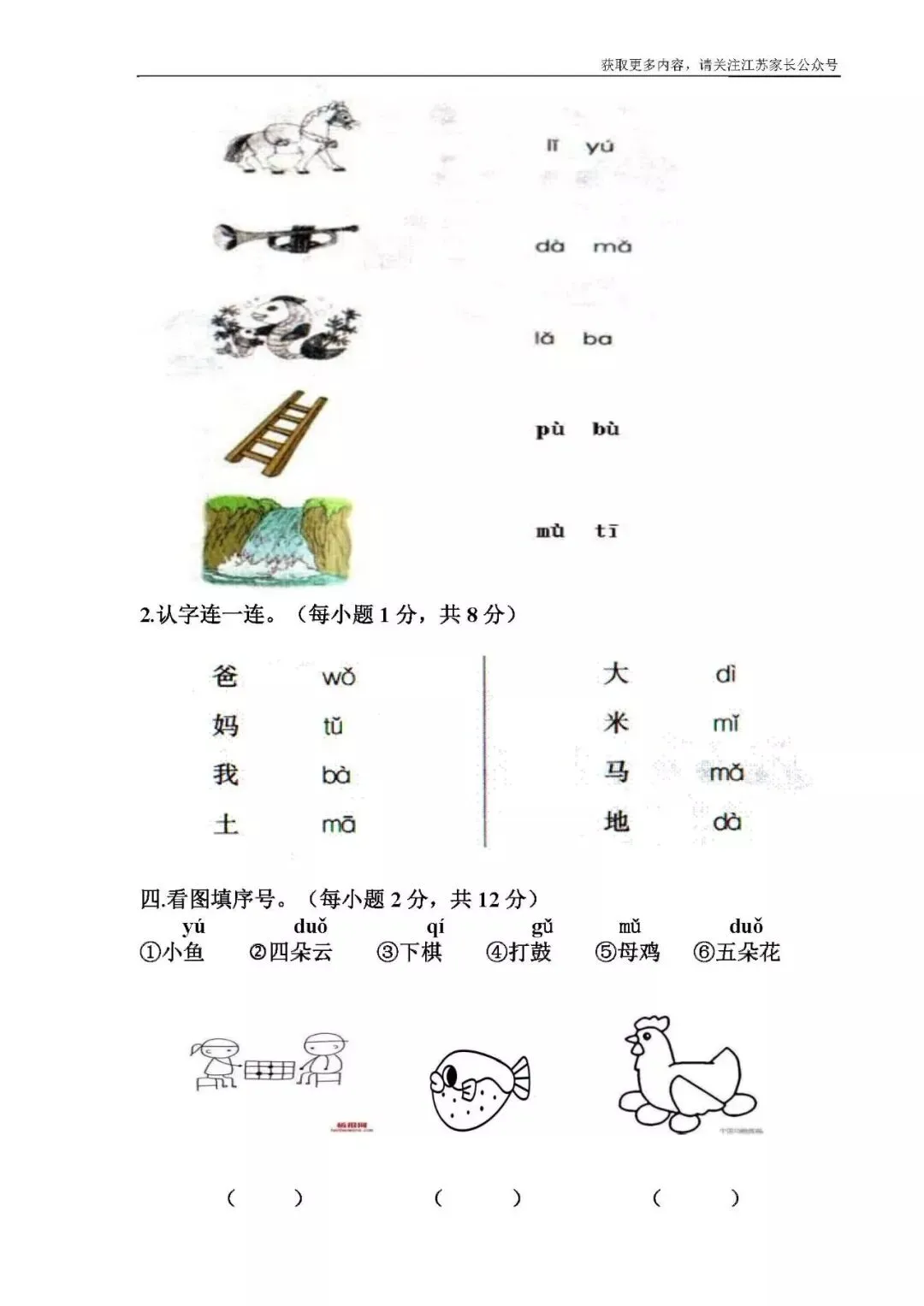 期末:一年级下册期末预测试卷2(可下载)