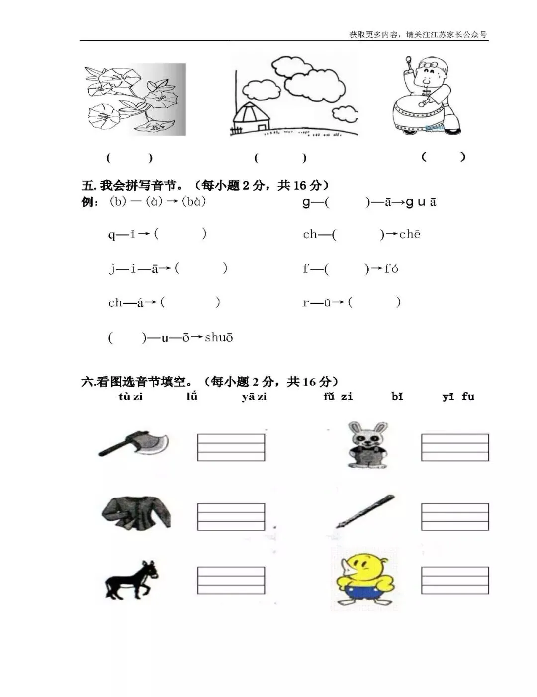 >部编语文一年级上册第2单元测试卷(可下载)