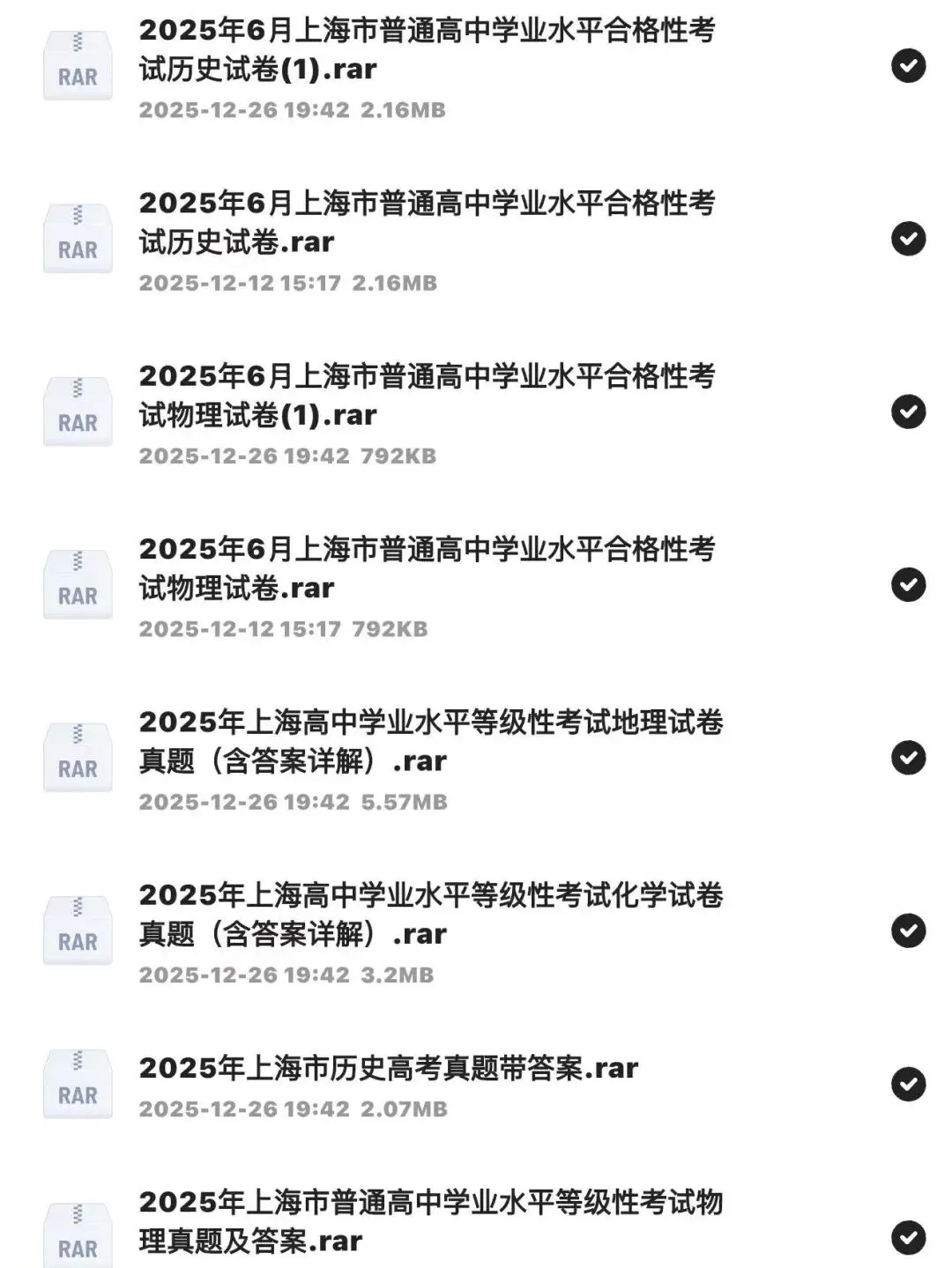 >2008-2025上海市高中学业水平考试真题