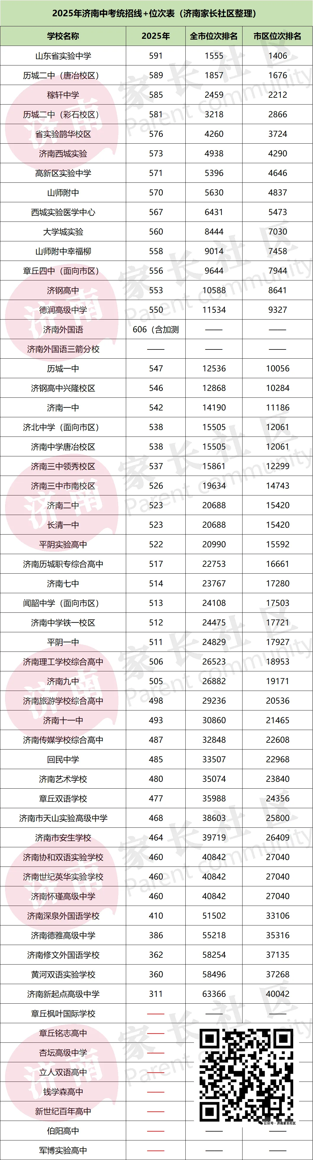 2025年济南各高中统招线及其位次