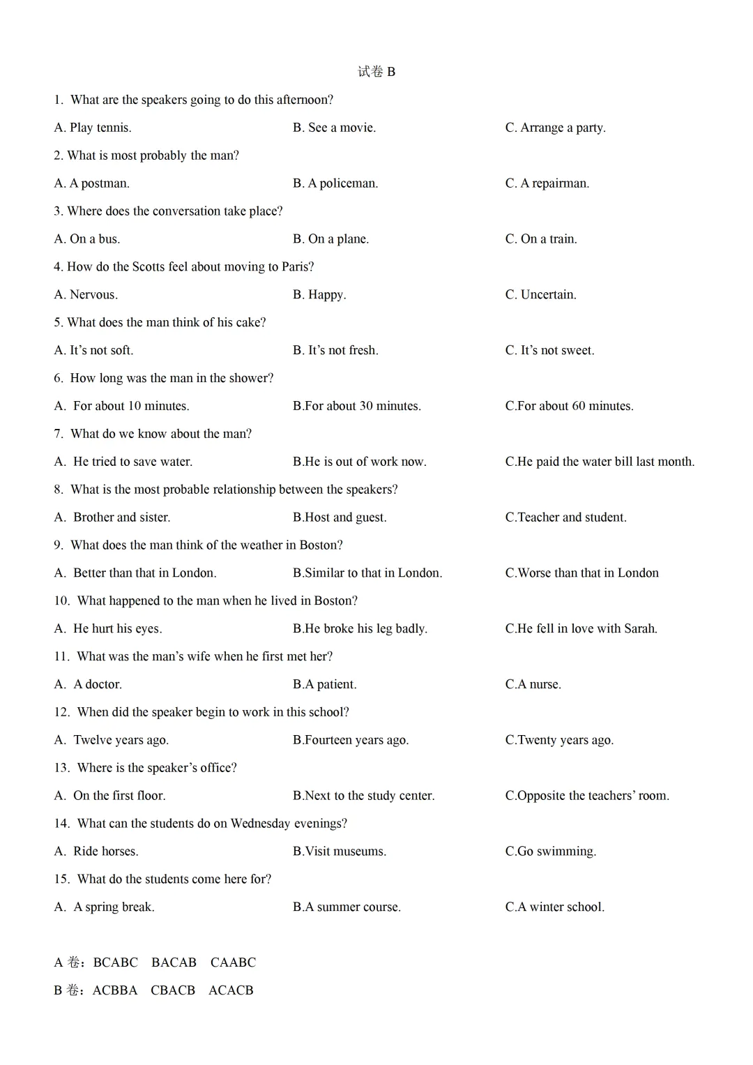【高考英语听力在线测试】高考听力机考模拟试题大全(持续更新中)