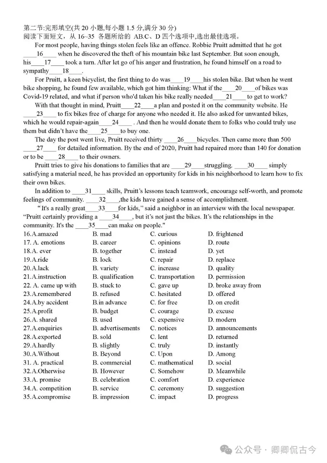 【目录2】高中英语完形填空限时训练大全(持续更新中~)