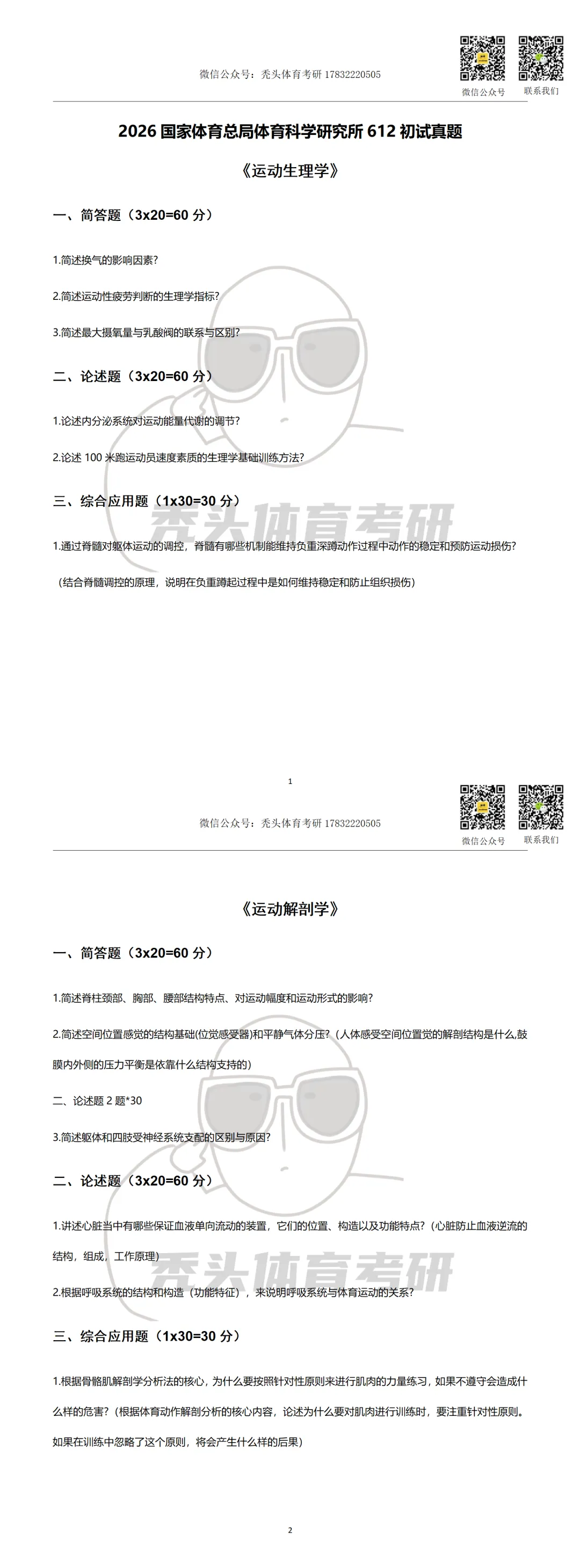 体育考研真题丨国家体育总局体育科学研究所 612初试真题(2026)