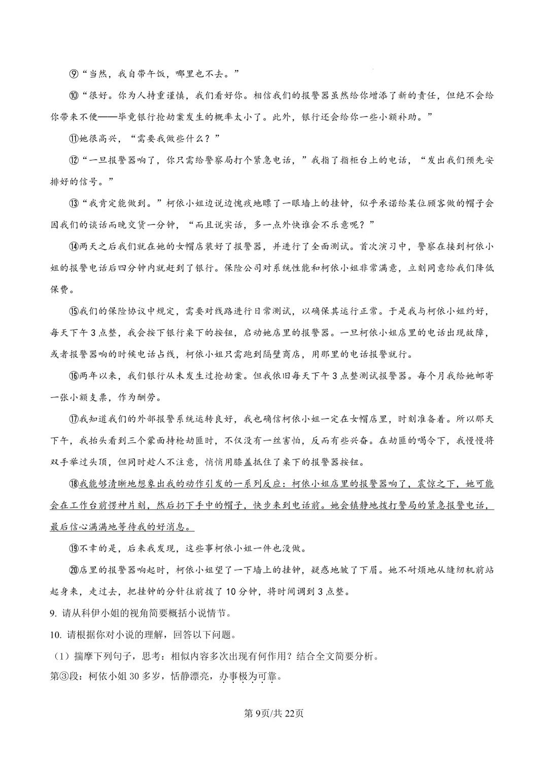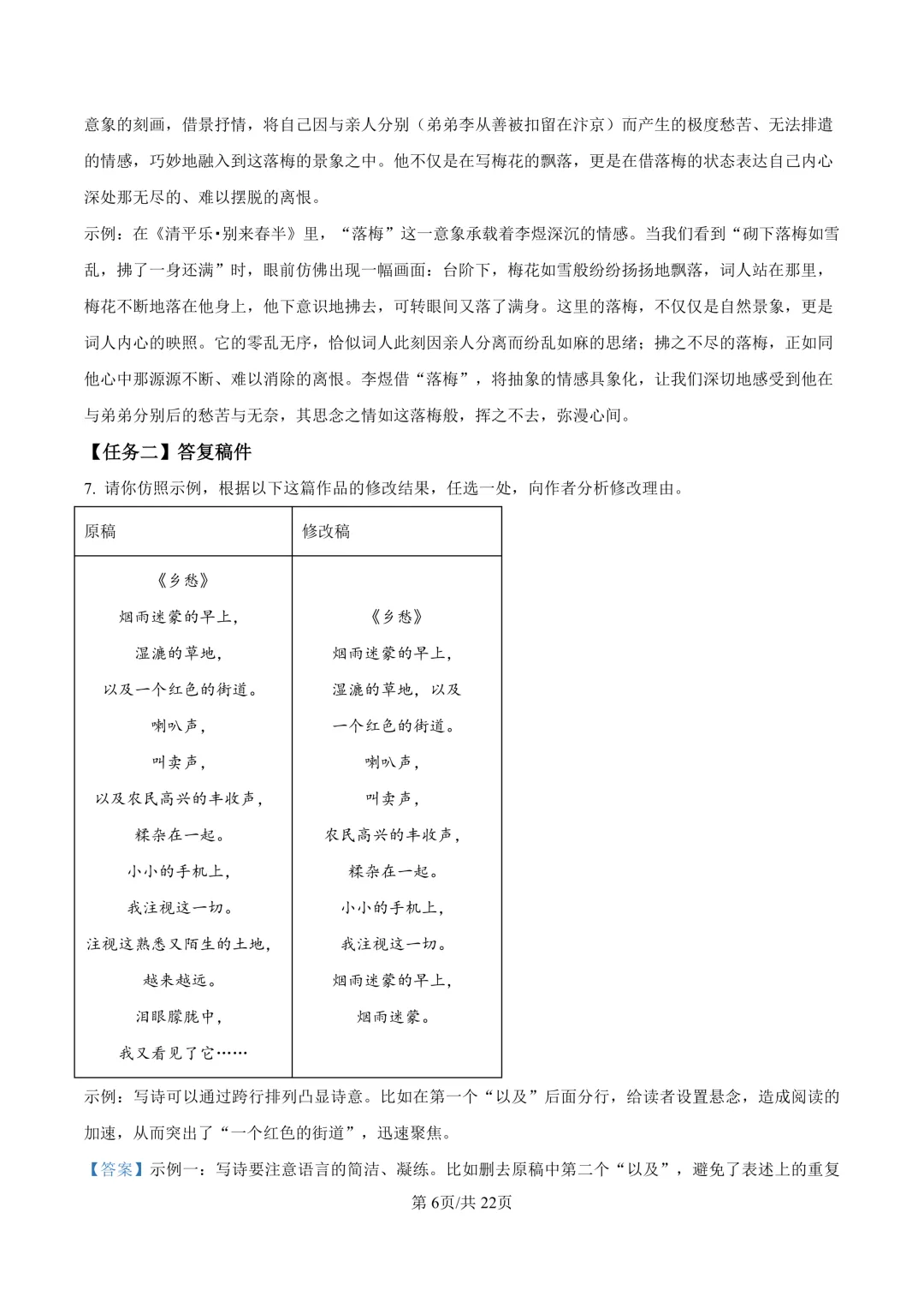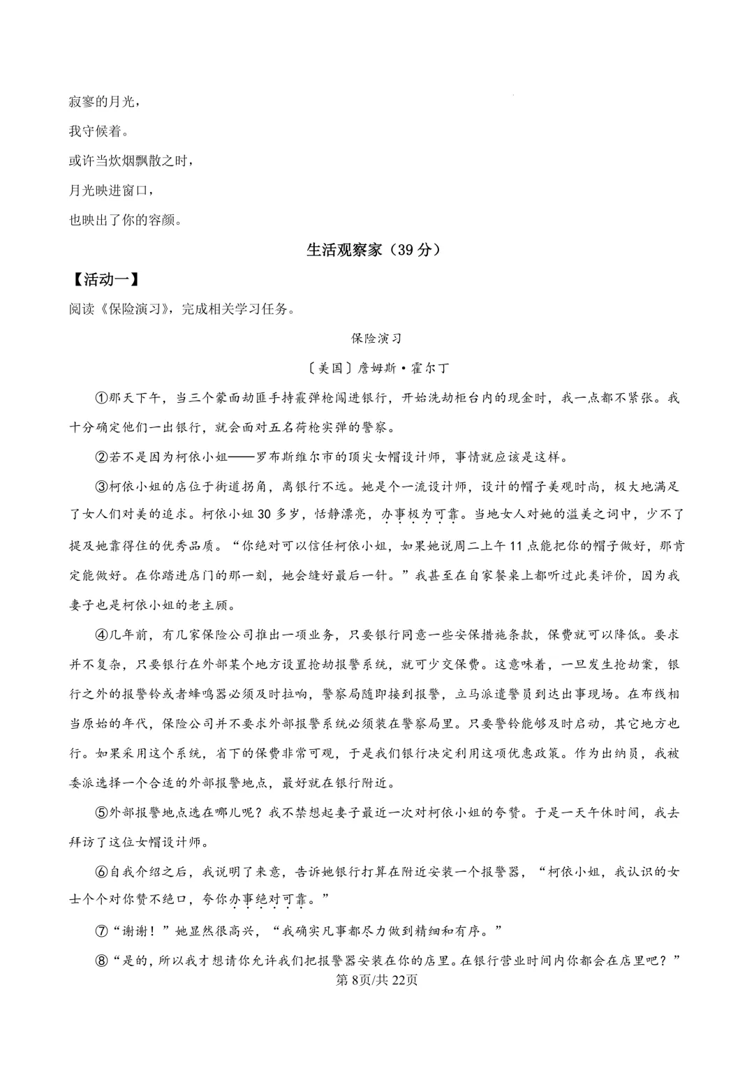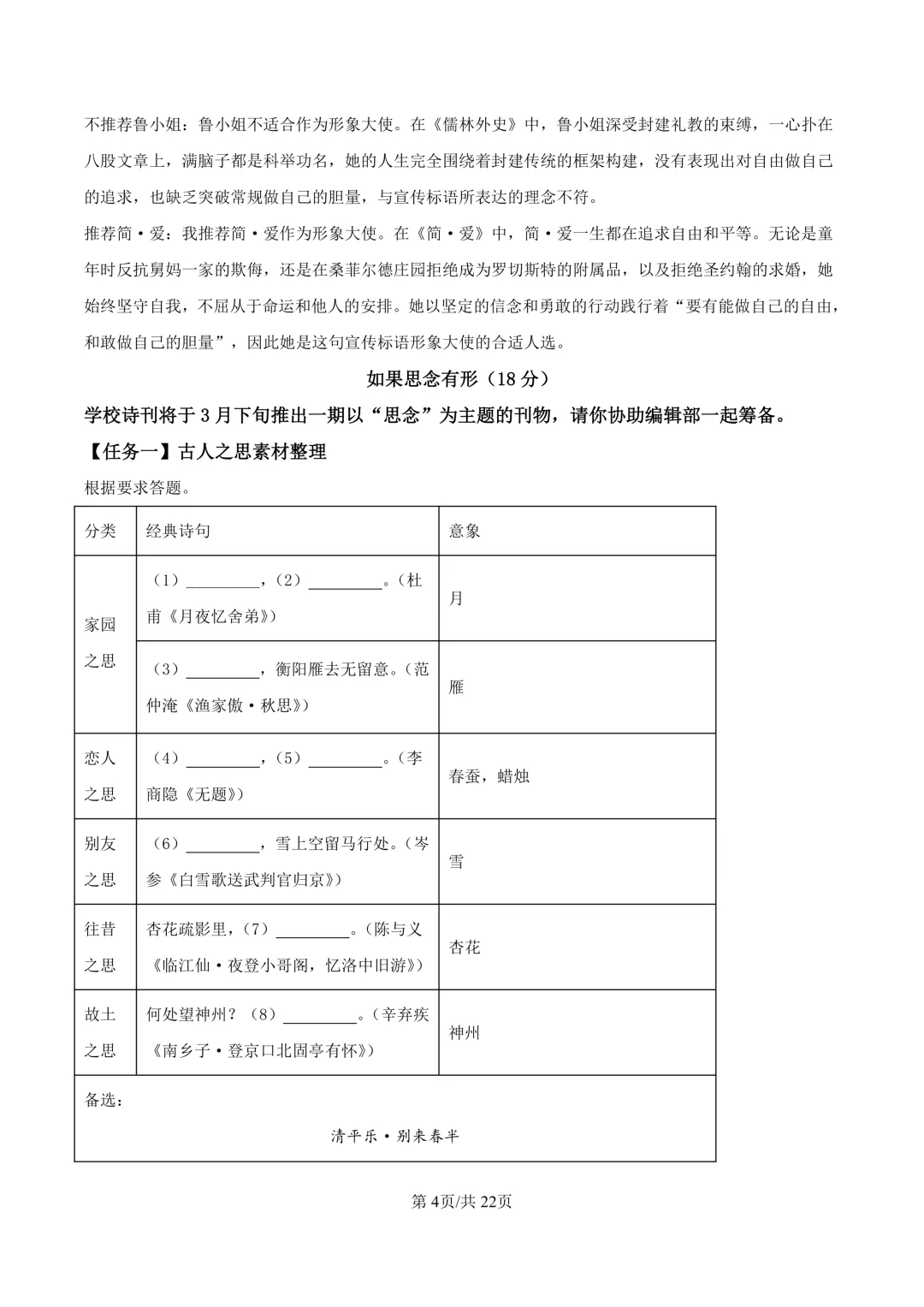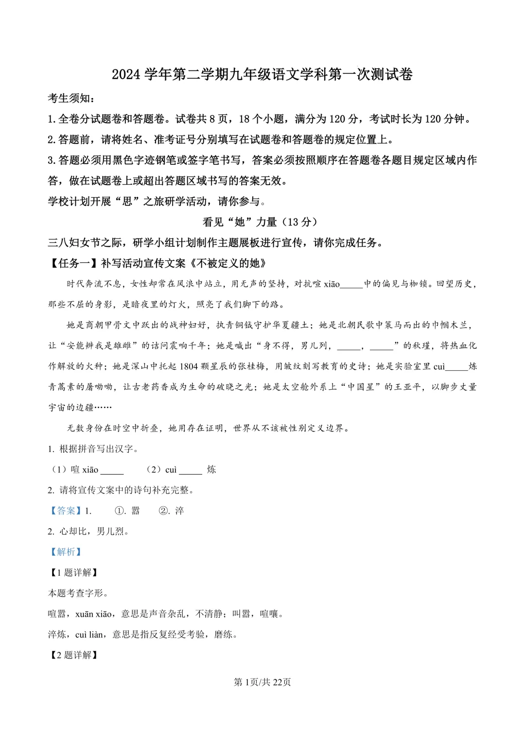 鄞州区十二校联考初三开学考语文卷及答案(25.3)