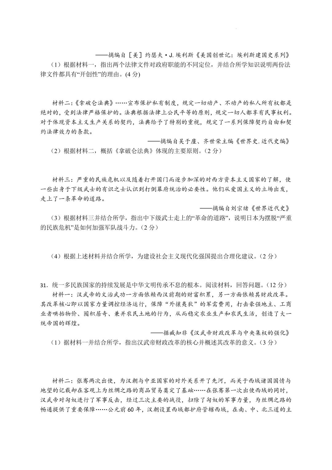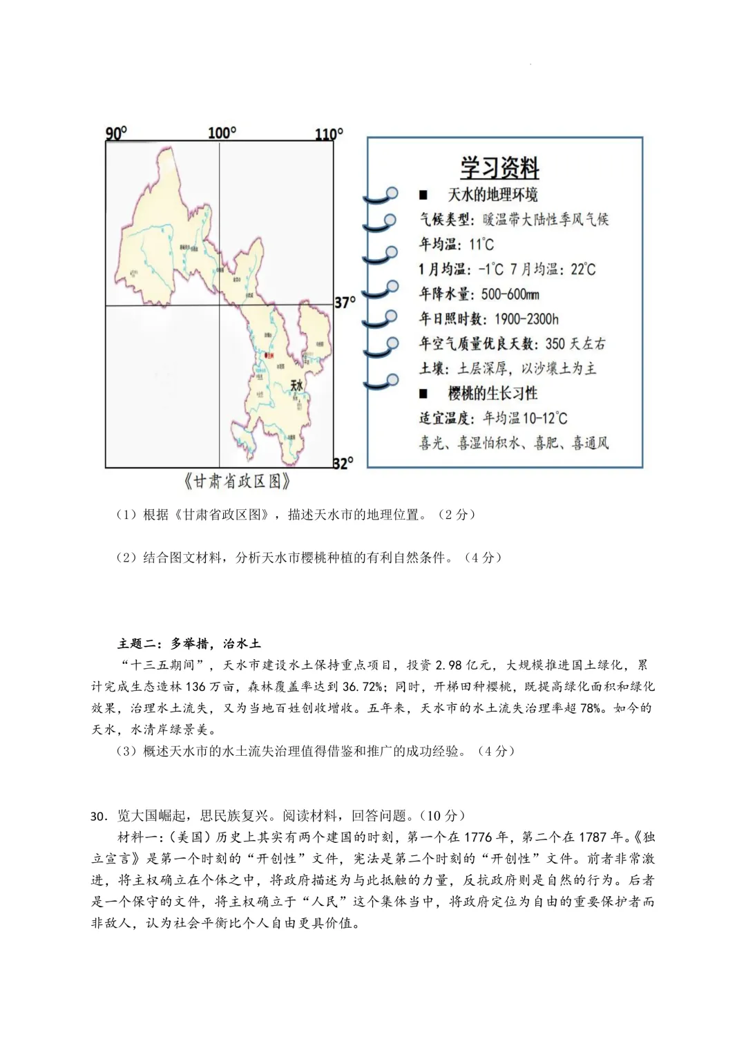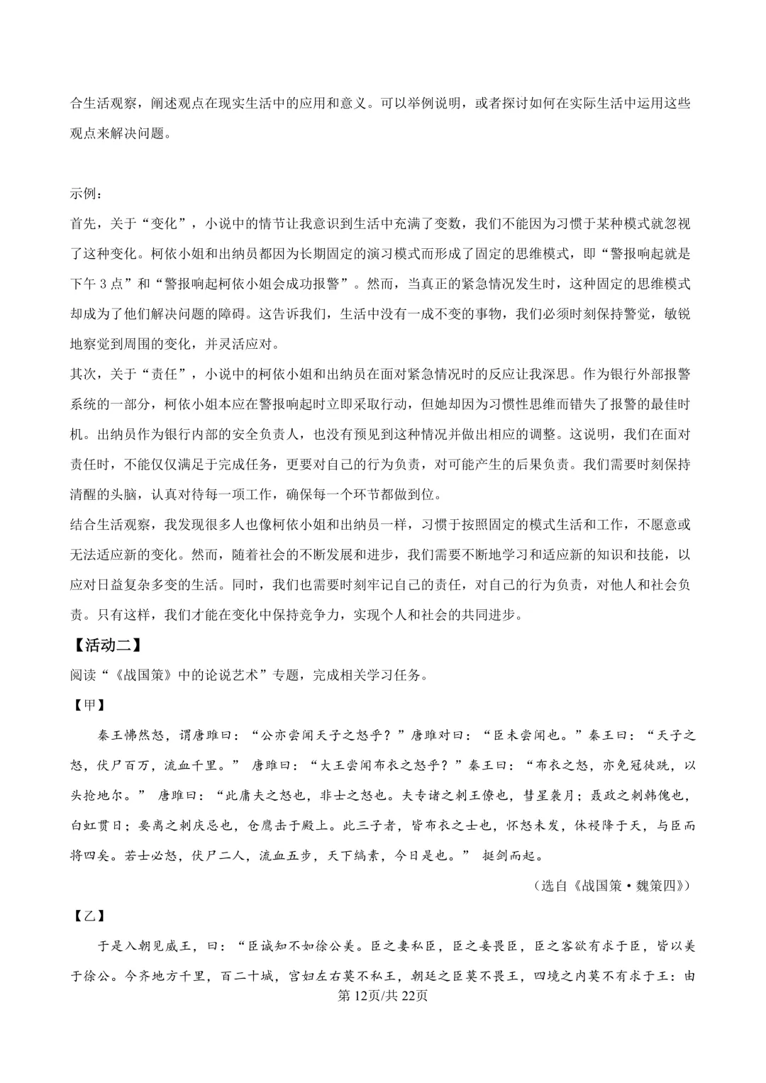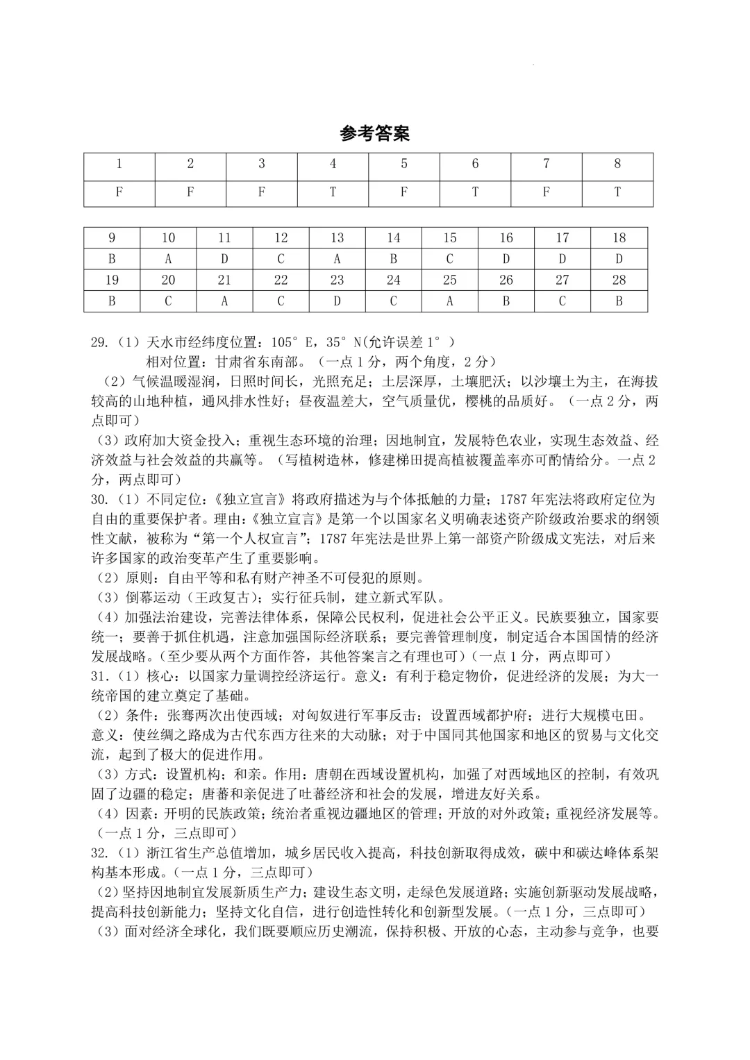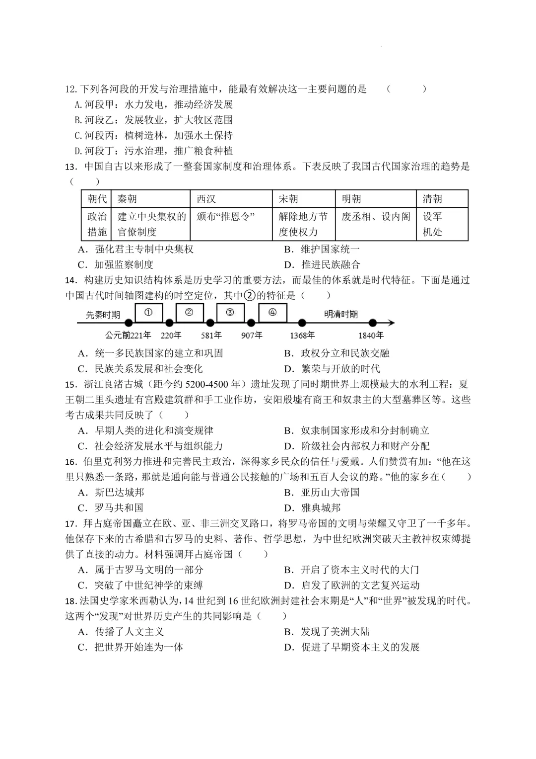 鄞州区十二校联考初三开学考社会卷及答案(25.3)
