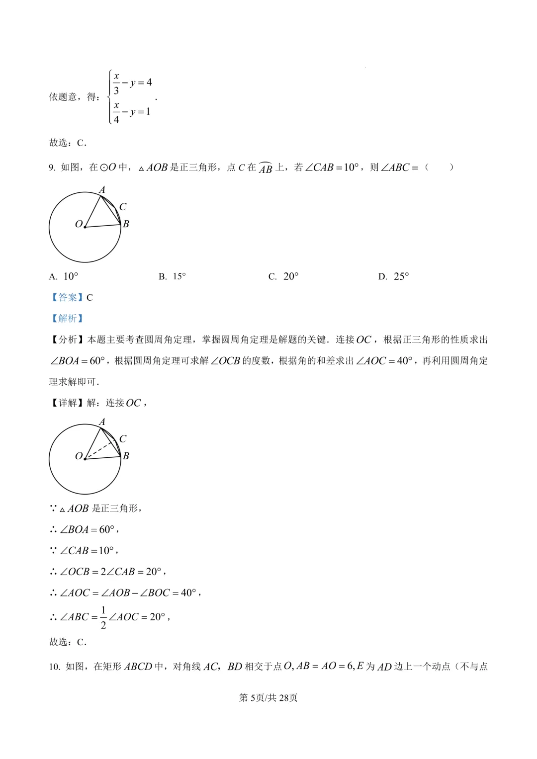 鄞州区十二校联考初三开学考数学卷及答案(25.3)