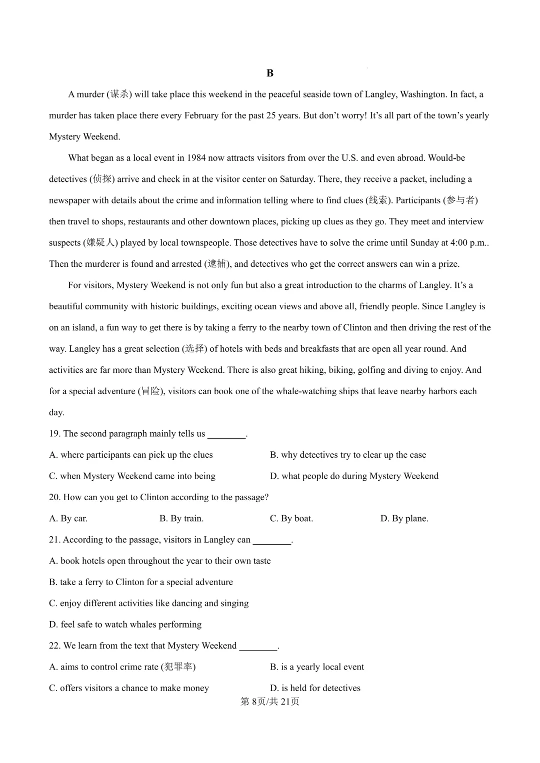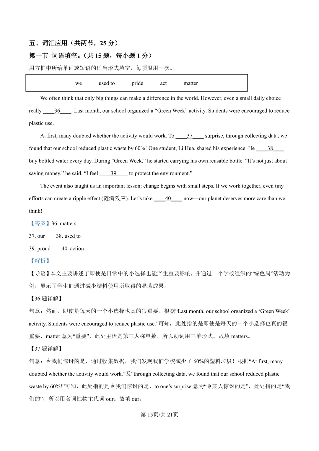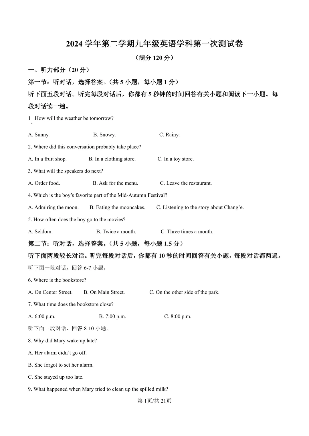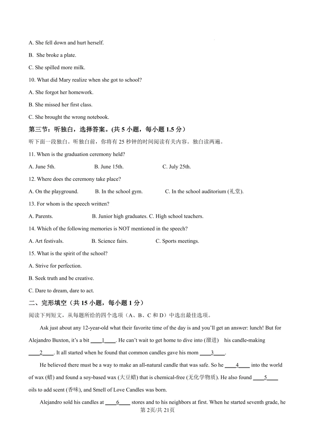 鄞州区十二校联考初三开学考英语卷及答案(25.3)