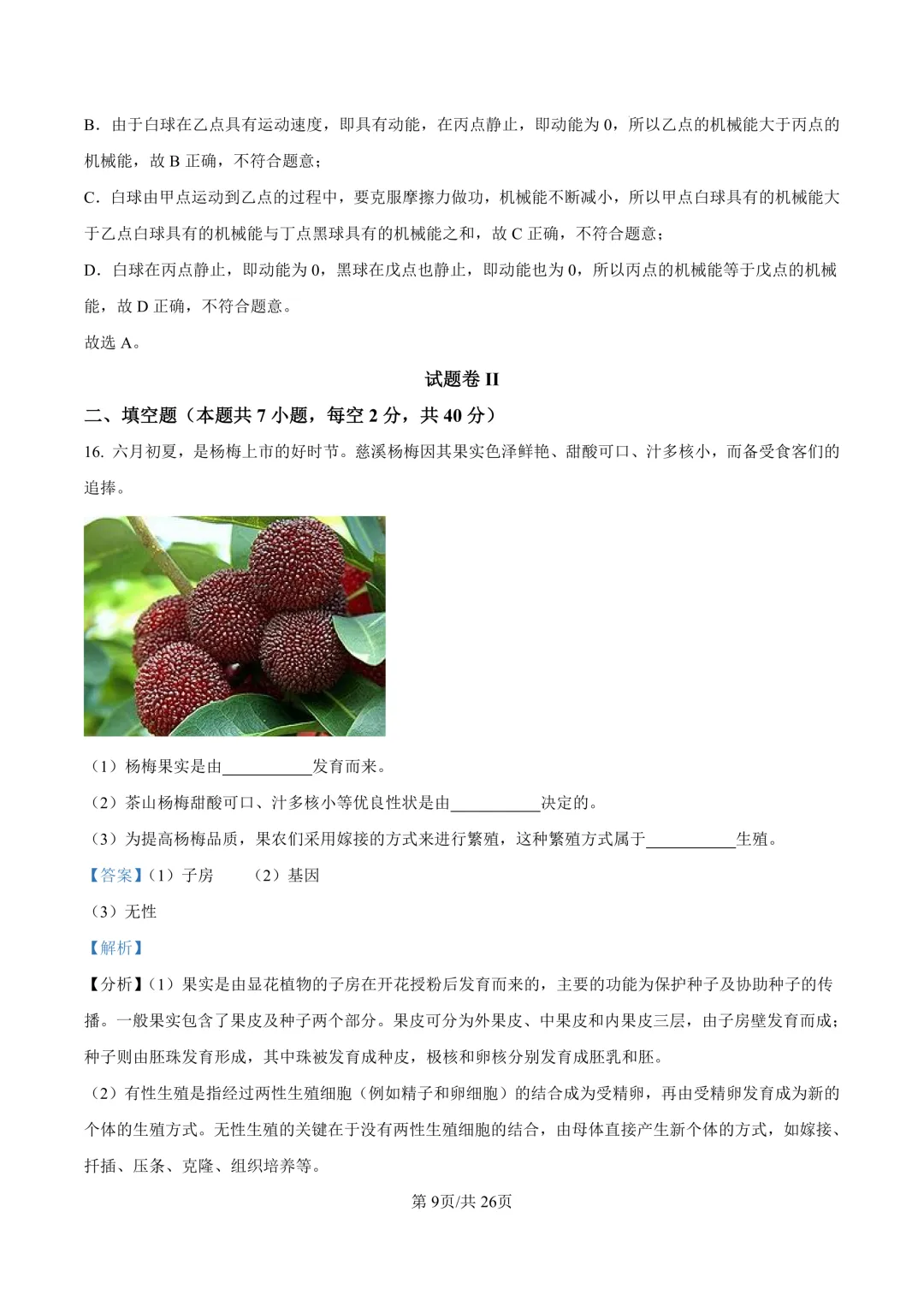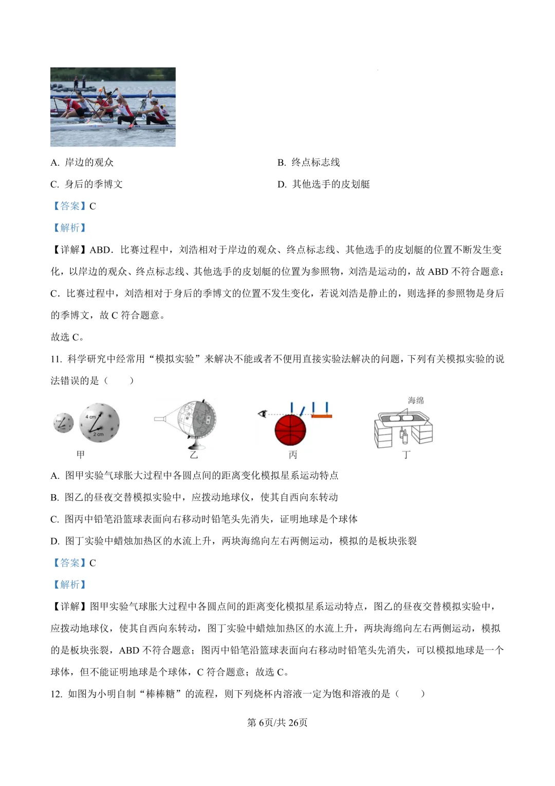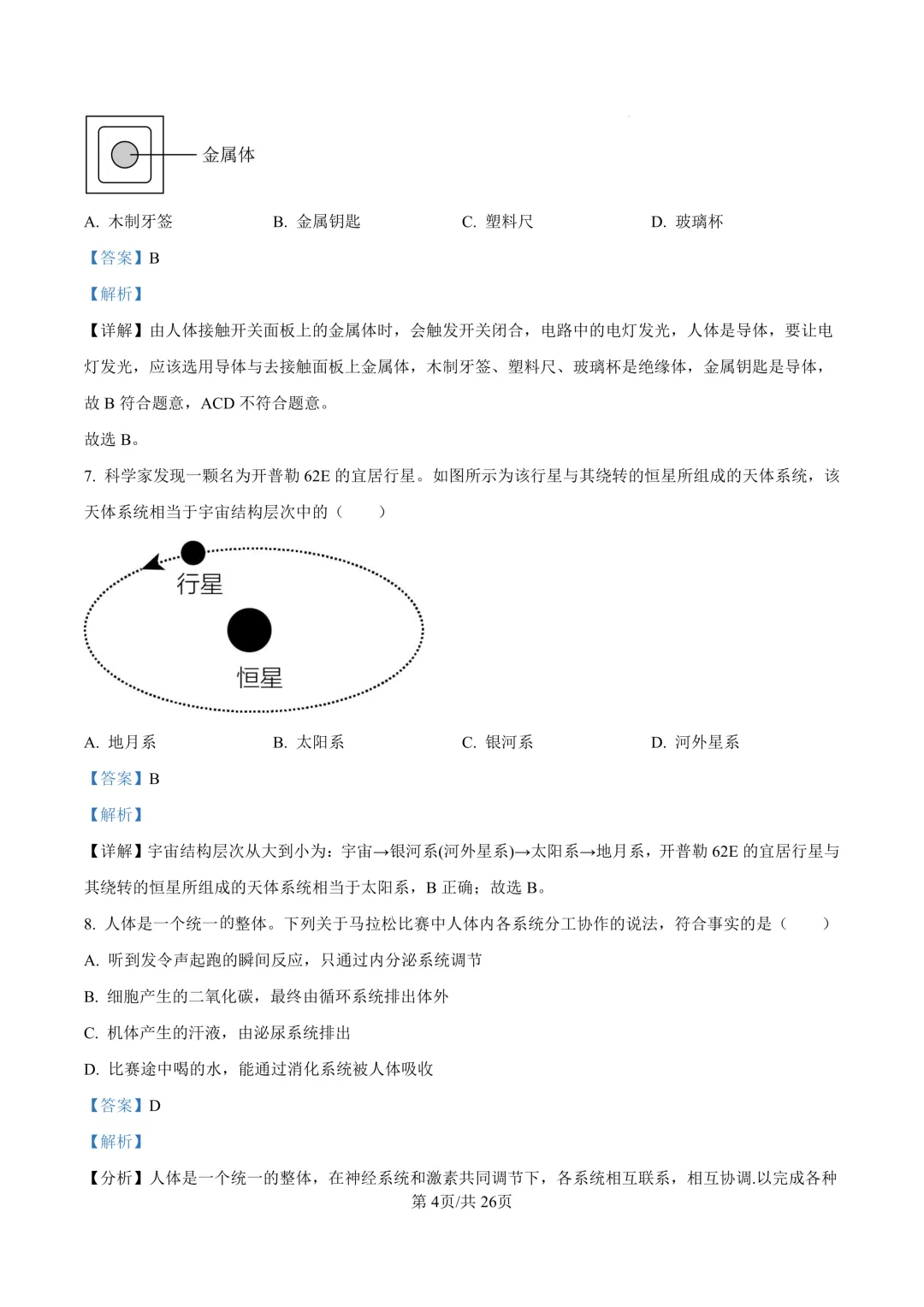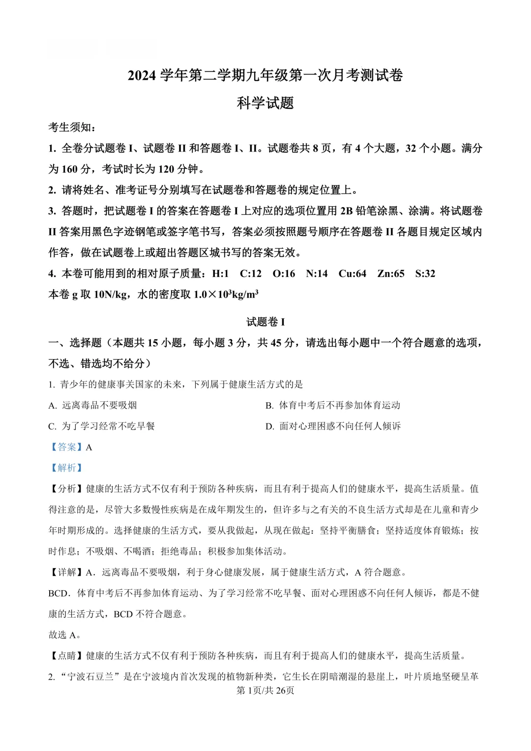 鄞州区十二校联考初三开学考科学卷及答案(25.3)