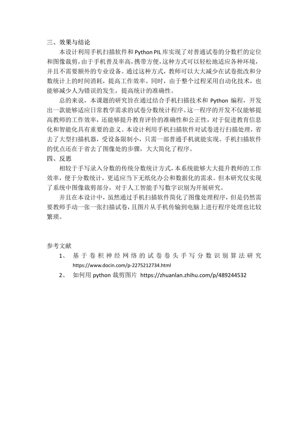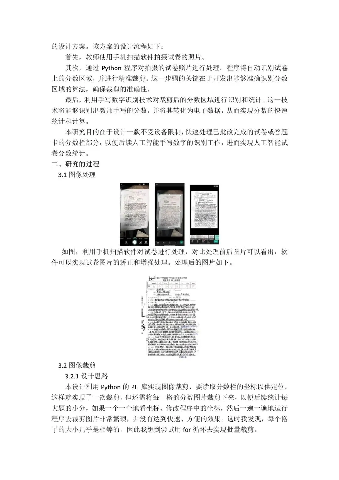 将图像裁剪技术应用于电子阅卷试卷分数统计中 曹玥 (“汇学人会研究” 学生市级优秀课题展播469)