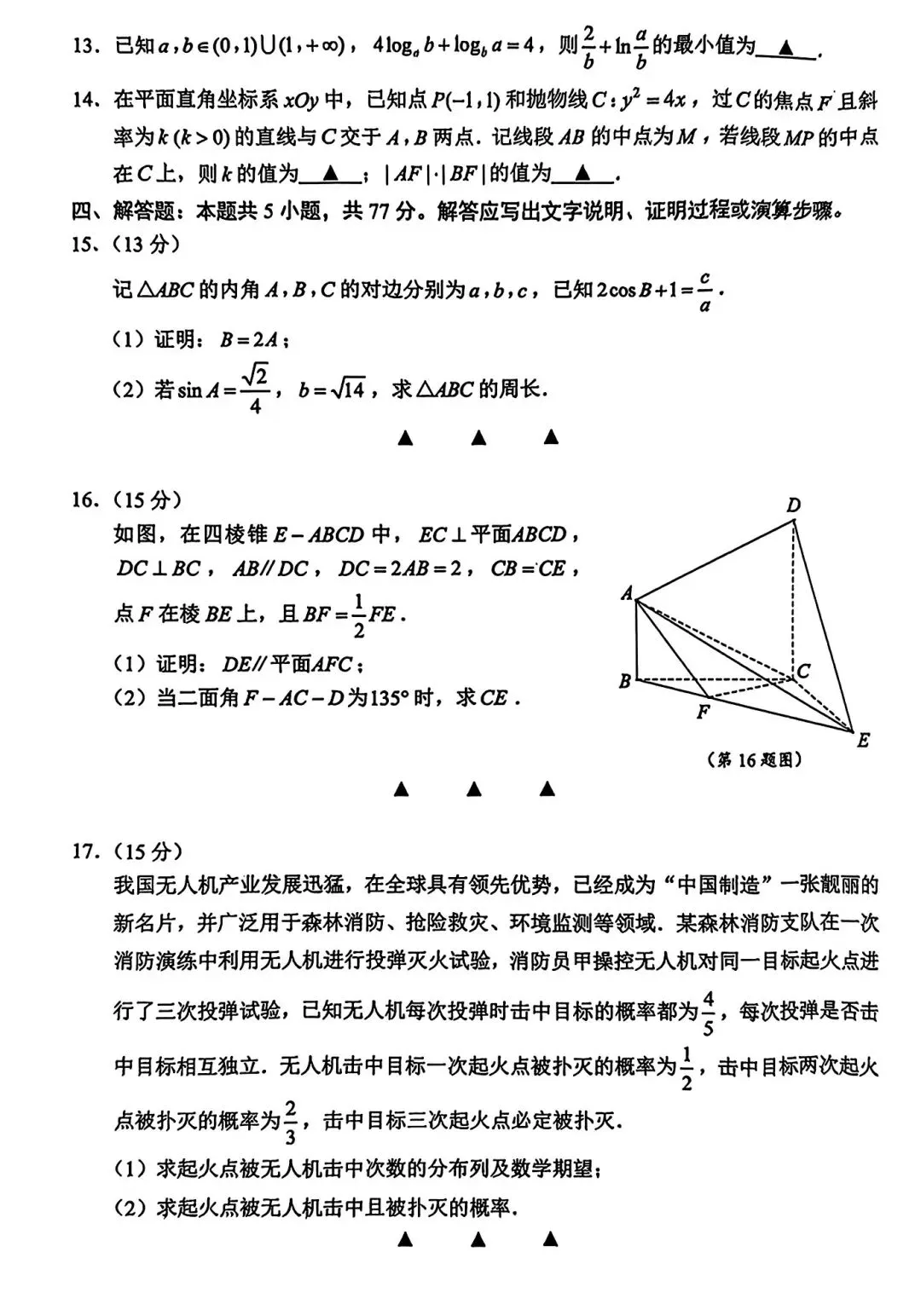 2024年苏锡常镇高三一模数学试卷+答案(2024.03)