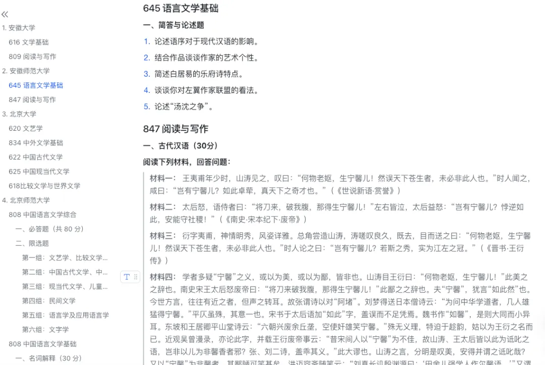 我整理了 2022~2026 年,近 5 年全国各大高校的文学考研真题。这不是简单的打包,而是逐字精校、重新排版,并设想用AI 技术赋能,让备考有方向,事半功倍。详情可看👉2022-2026 文学考研真题汇编(精校版)