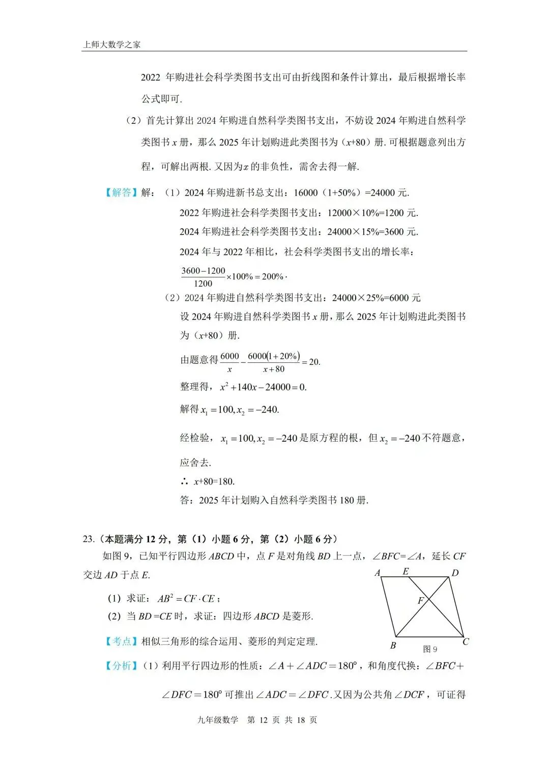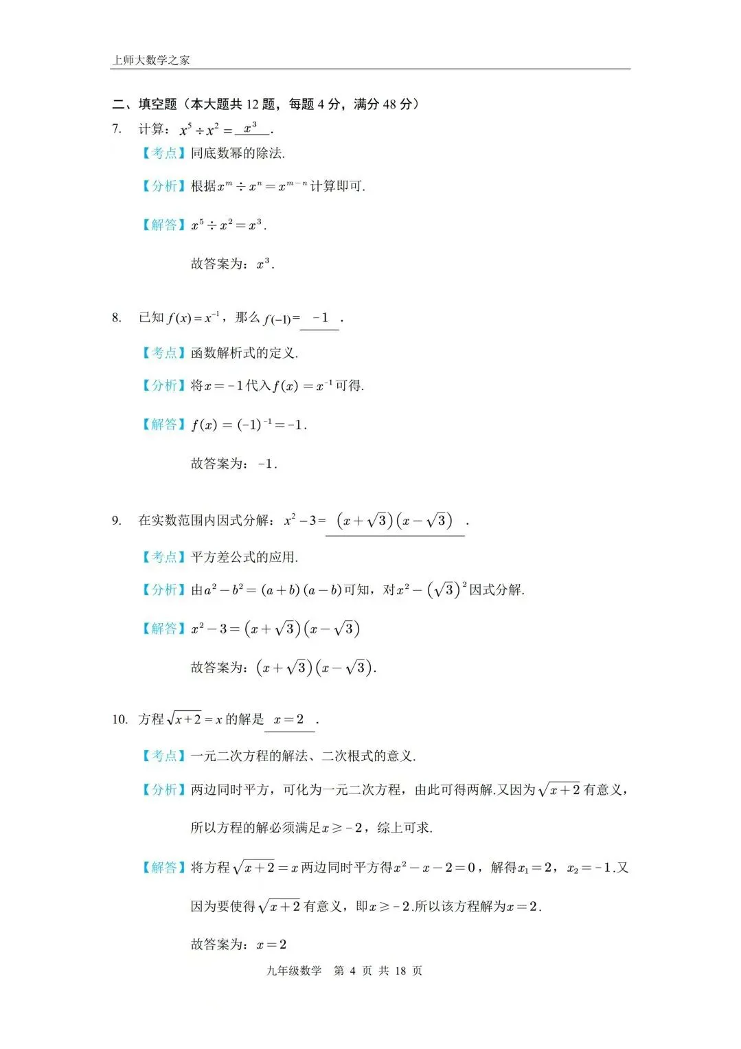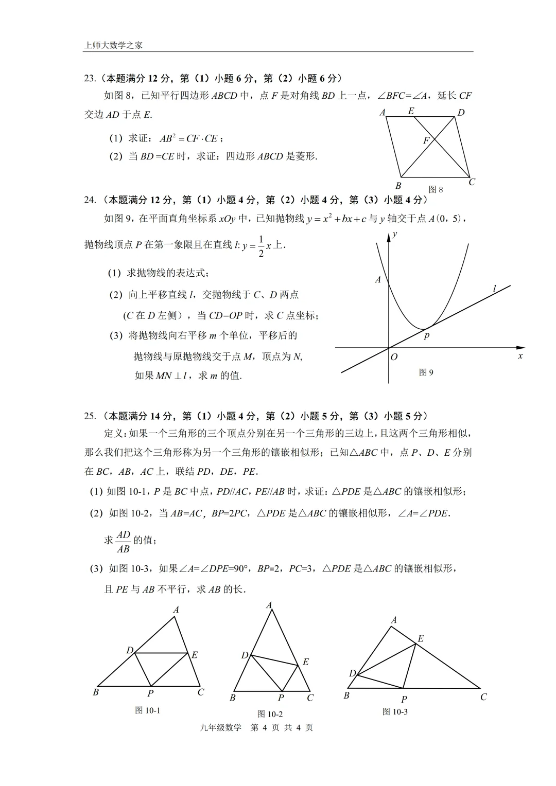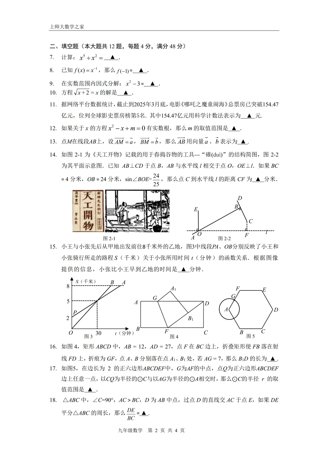 今日解析2025届上海市奉贤区中考数学二模试卷,试卷源自互联网,部分解析思路有所借鉴。