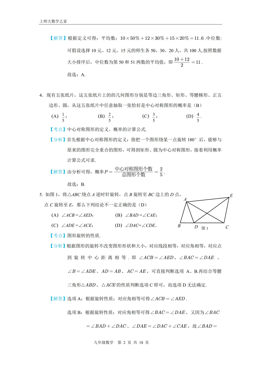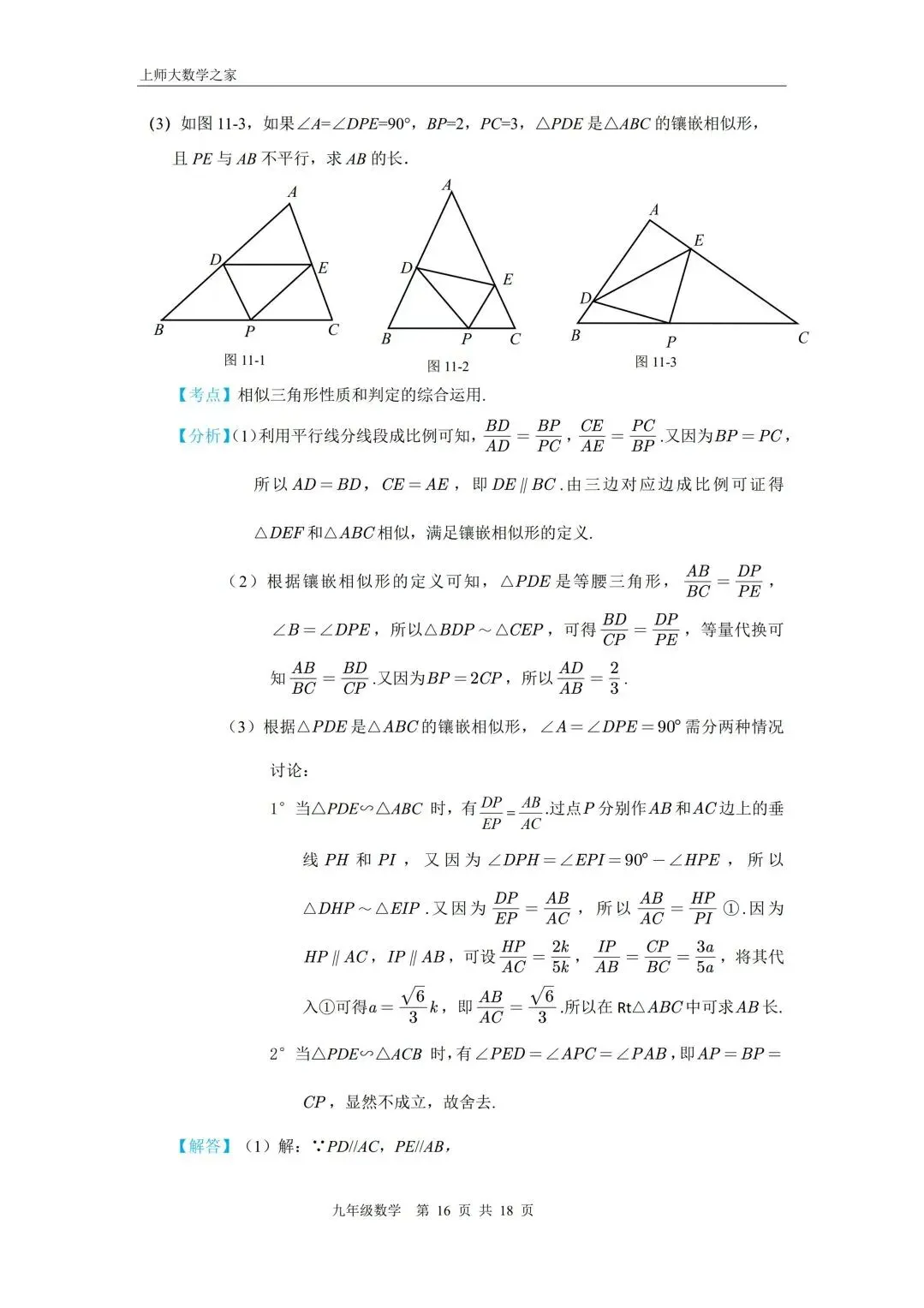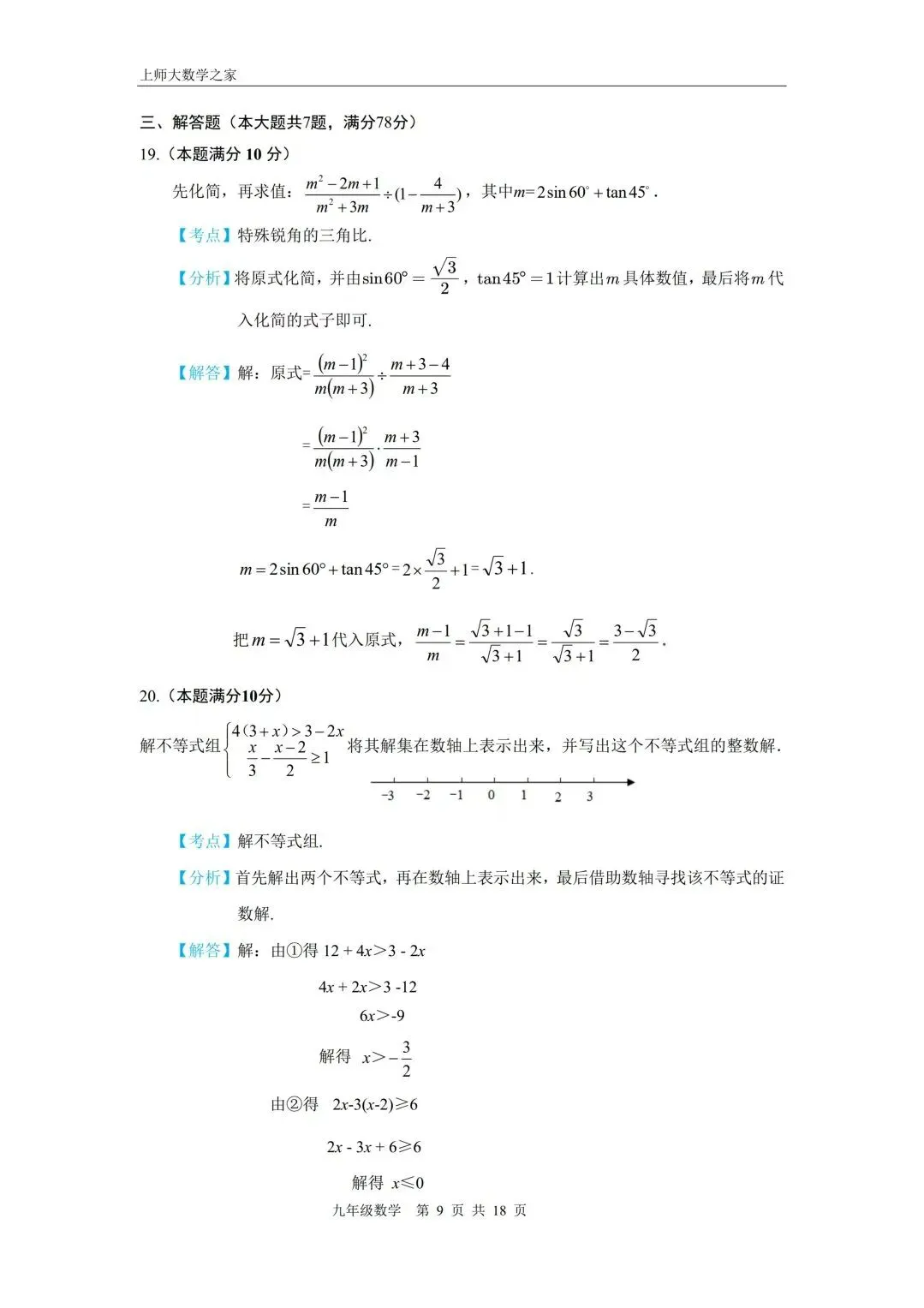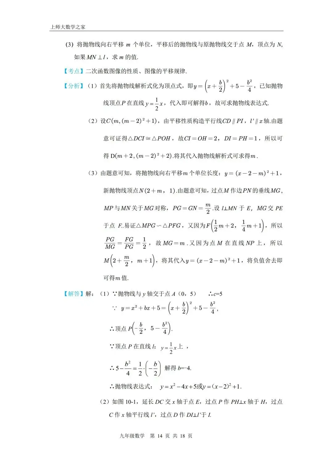第6题巧用函数图像平移规律;第16题翻折问题涉及“角平分线+平行线”,证等腰三角形;第17题考查圆与圆的位置关系以及与正六边形的性质,锻炼综合运用知识能力;第18题突破在于构造中位线,寻找直角三角形各边关系。