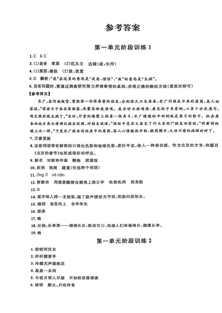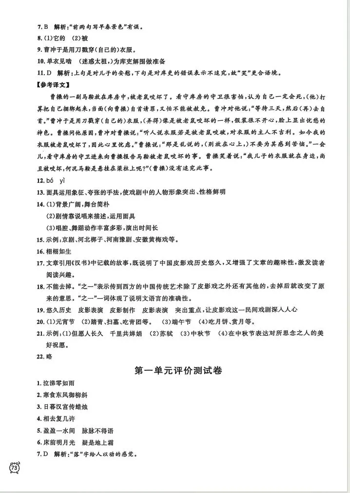 【A637语文】六年级(下)语文金试卷--答案