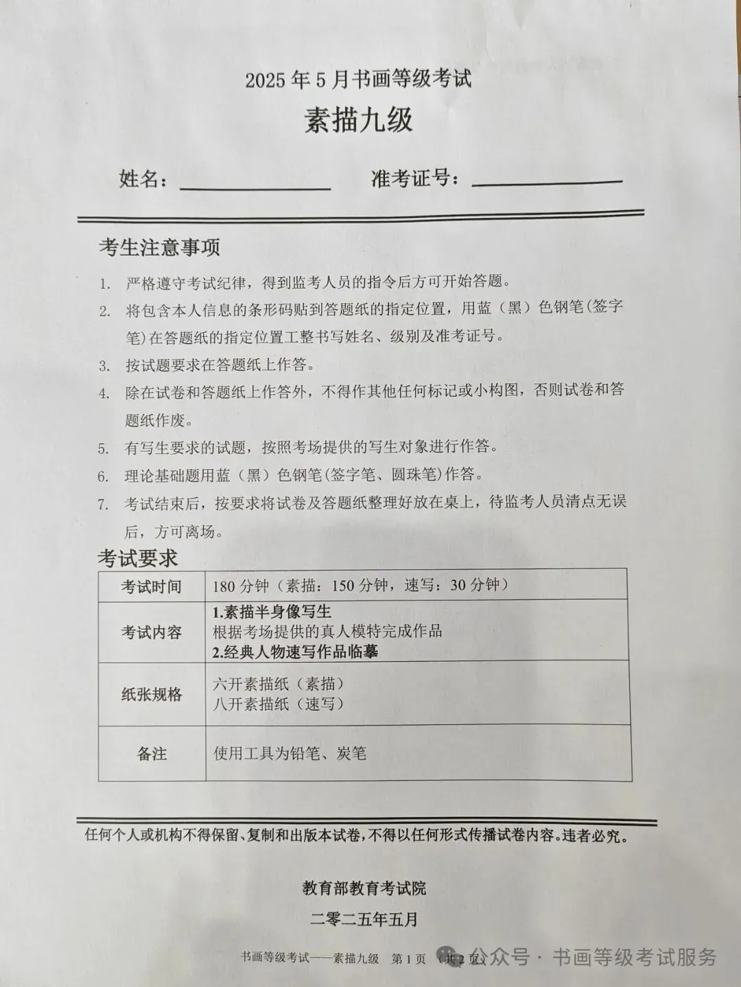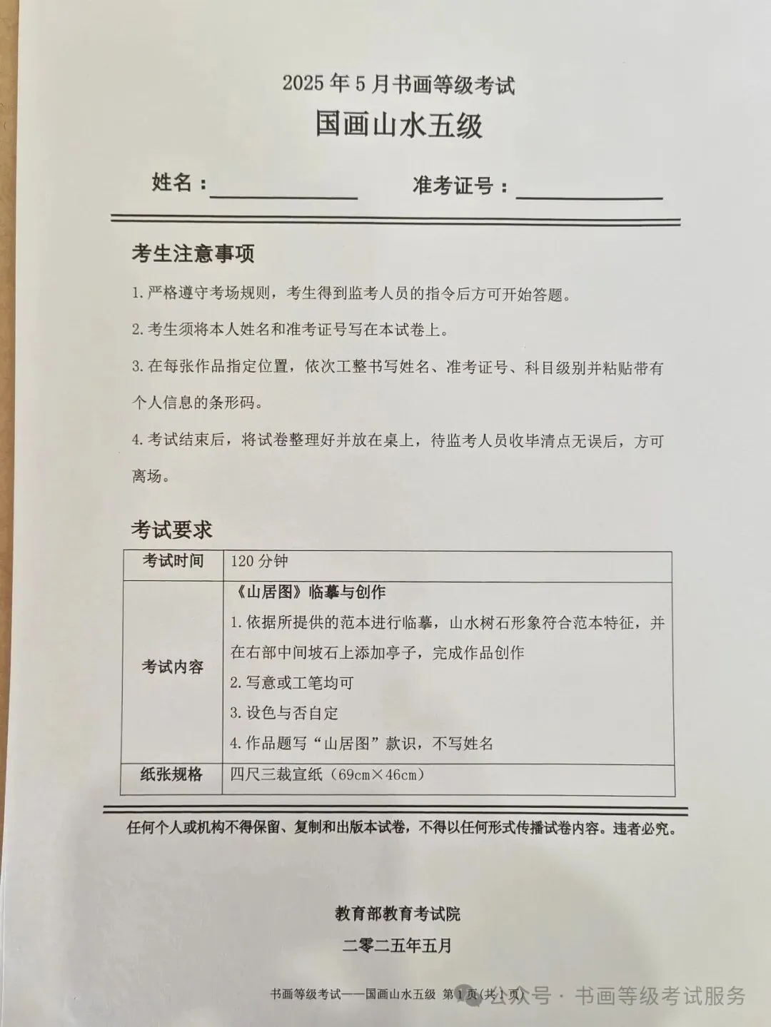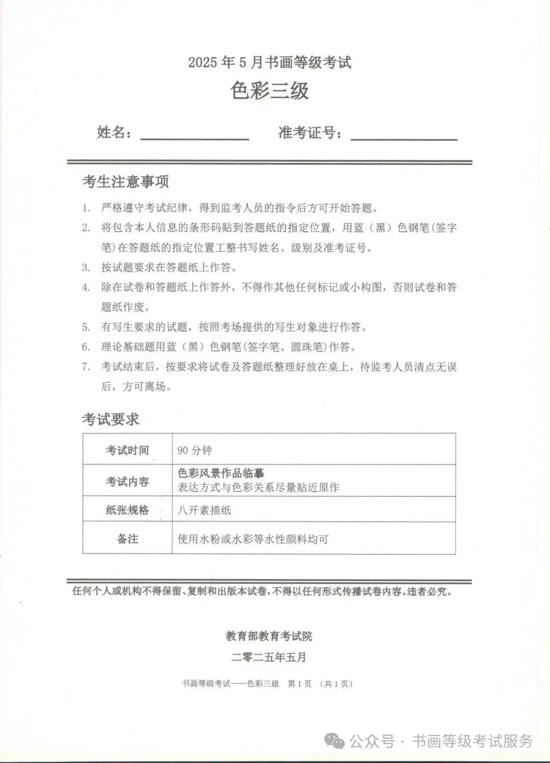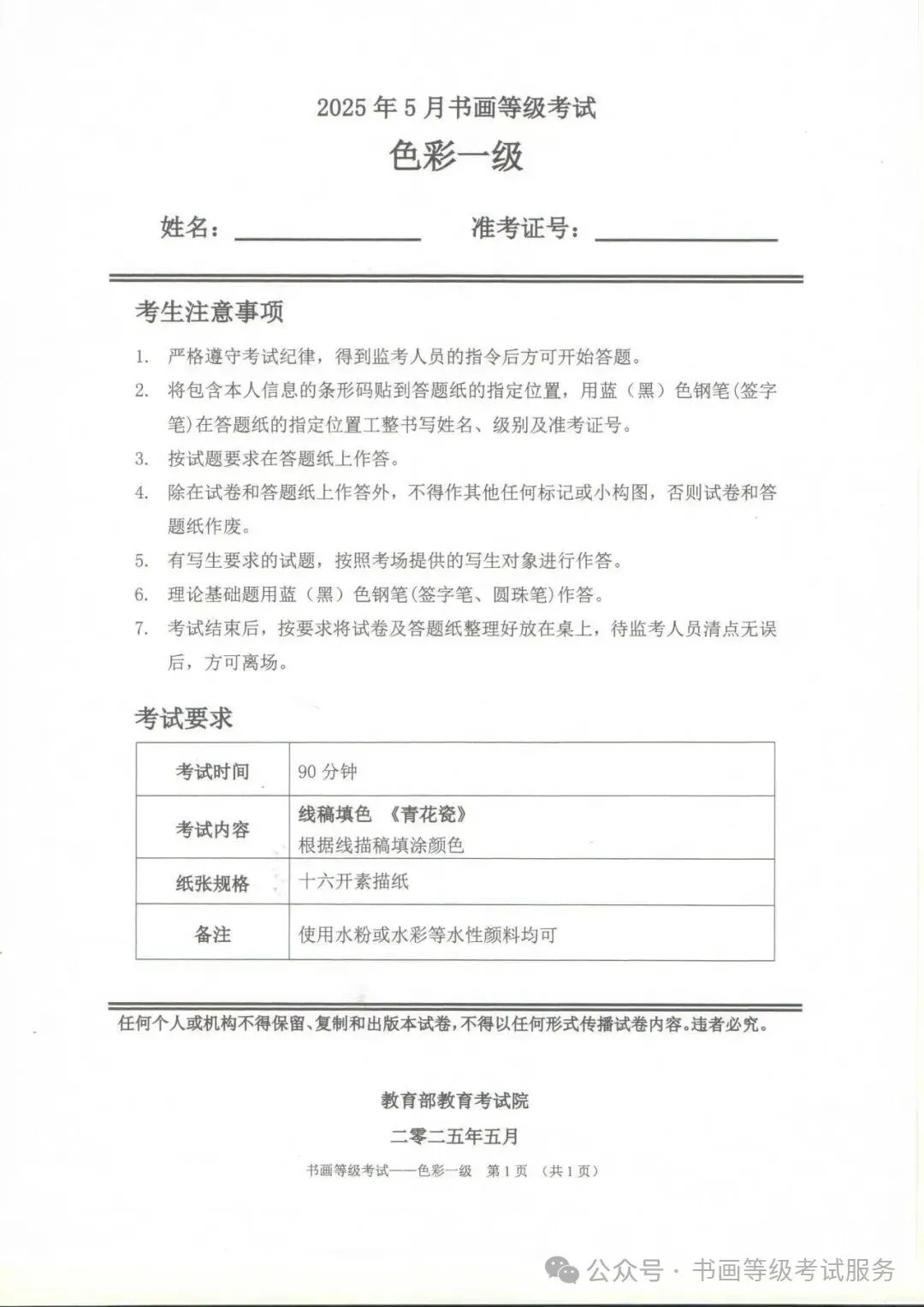 临沂市考试中心办公室为了协助考试点、中小学校、高职院校及书画培训机构,有针对性地培训及辅导报考参加教育部书画等级考试的考生,提高考级辅导老师专业水平和工作(辅导)效率,整理出教育部考试中心书画等级考试2025年5月考试真题,辅助资料以供考前模拟练习使用,进而协助老师辅导及考生练习使用,确保教育部教育考试院书画等级考试临沂市考生整体通过率再次提高!