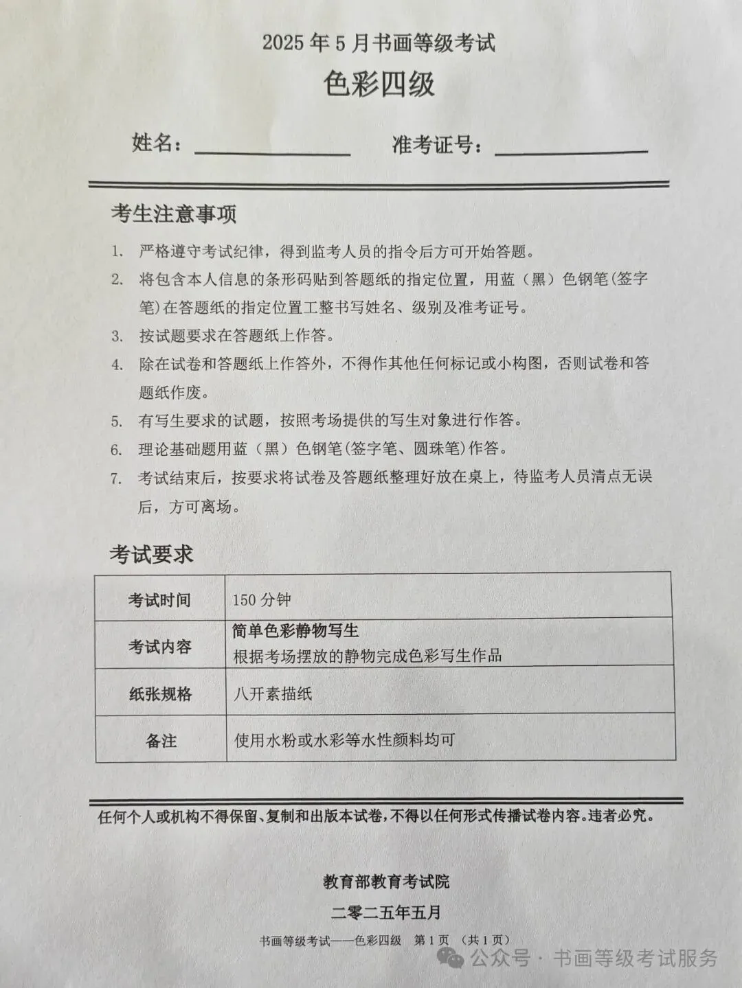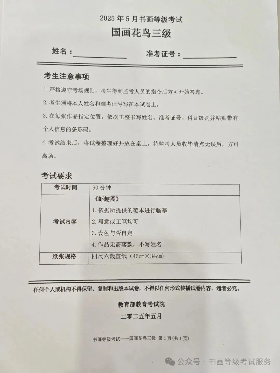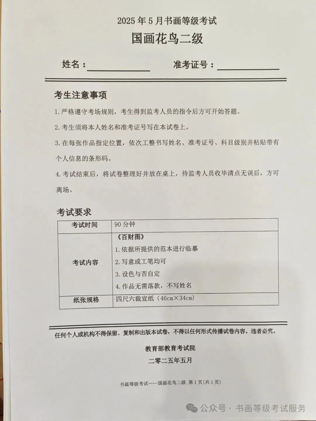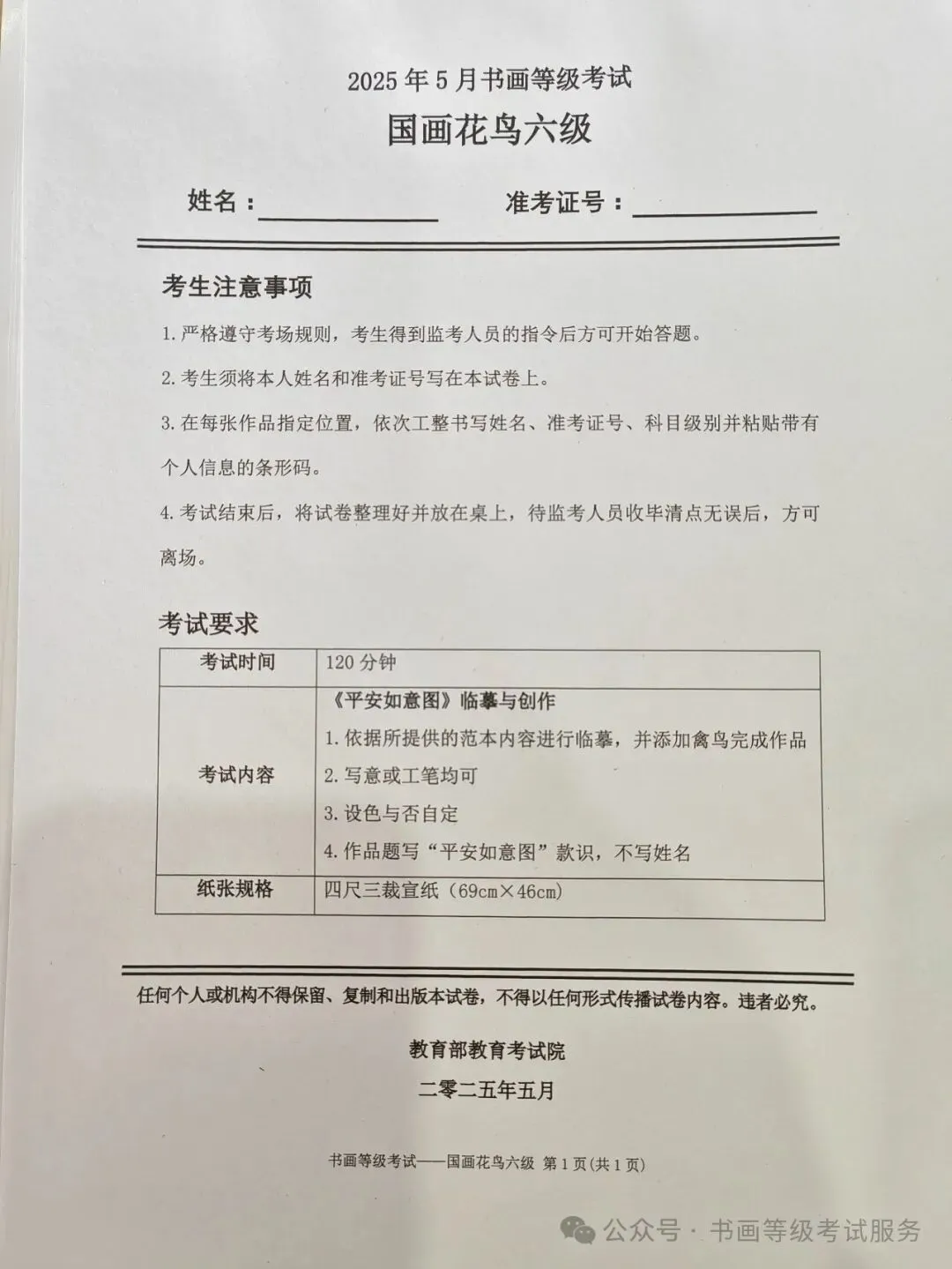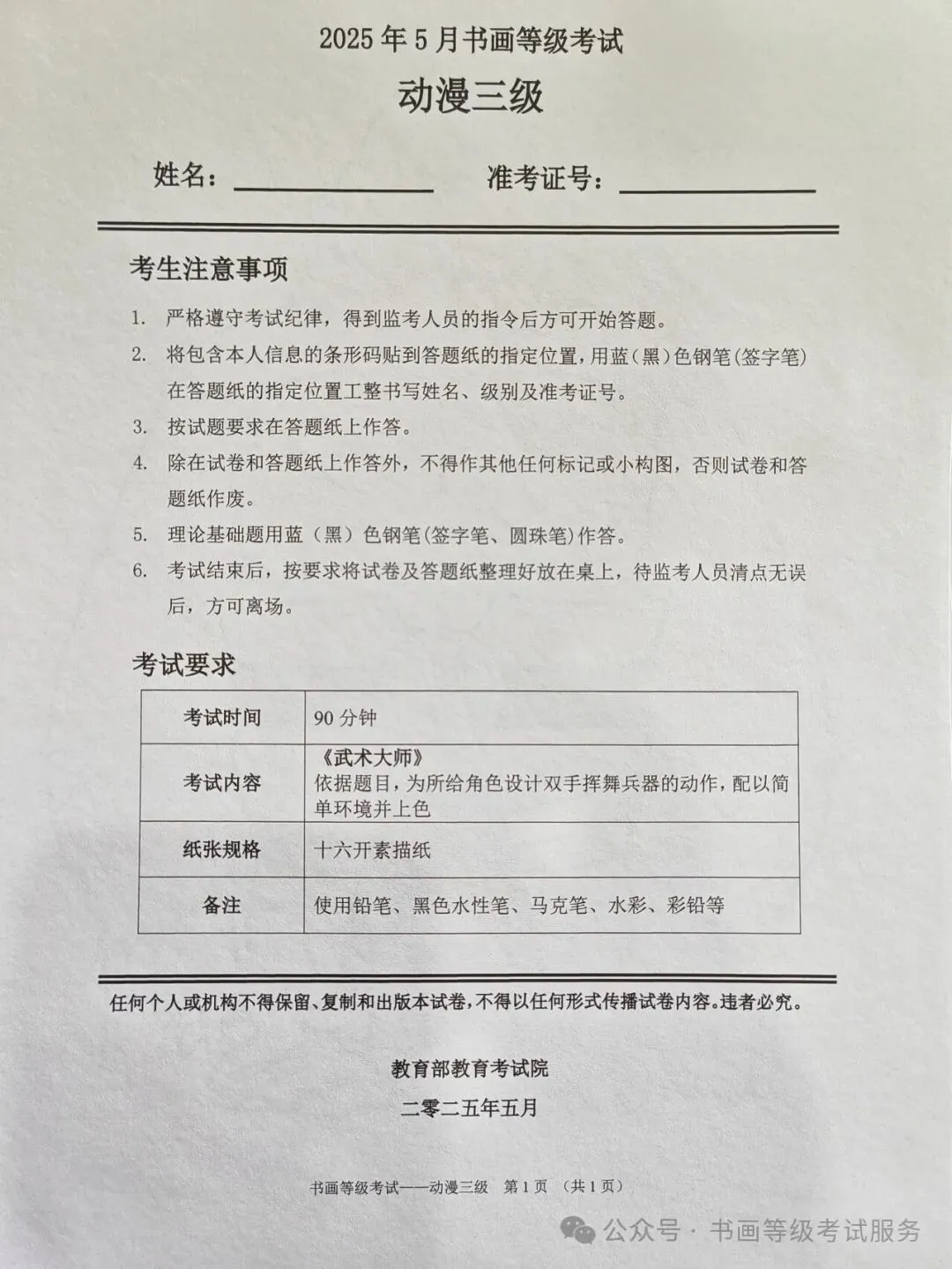 临沂市考试中心办公室为了协助考试点、中小学校、高职院校及书画培训机构,有针对性地培训及辅导报考参加教育部书画等级考试的考生,提高考级辅导老师专业水平和工作(辅导)效率,整理出教育部考试中心书画等级考试2025年5月考试真题,辅助资料以供考前模拟练习使用,进而协助老师辅导及考生练习使用,确保教育部教育考试院书画等级考试临沂市考生整体通过率再次提高!