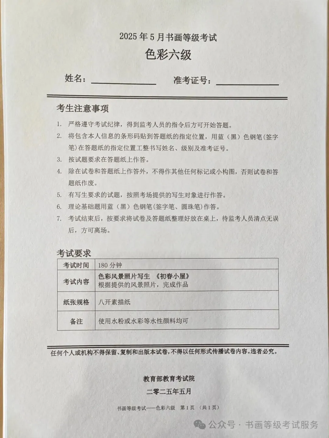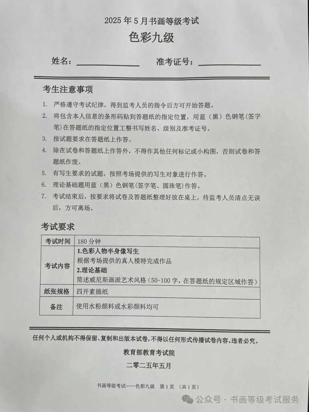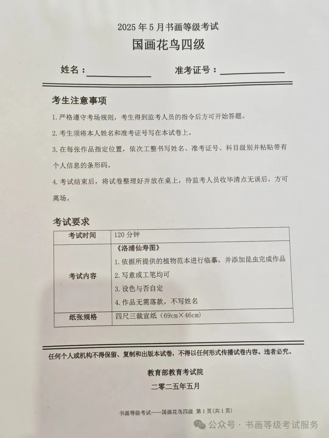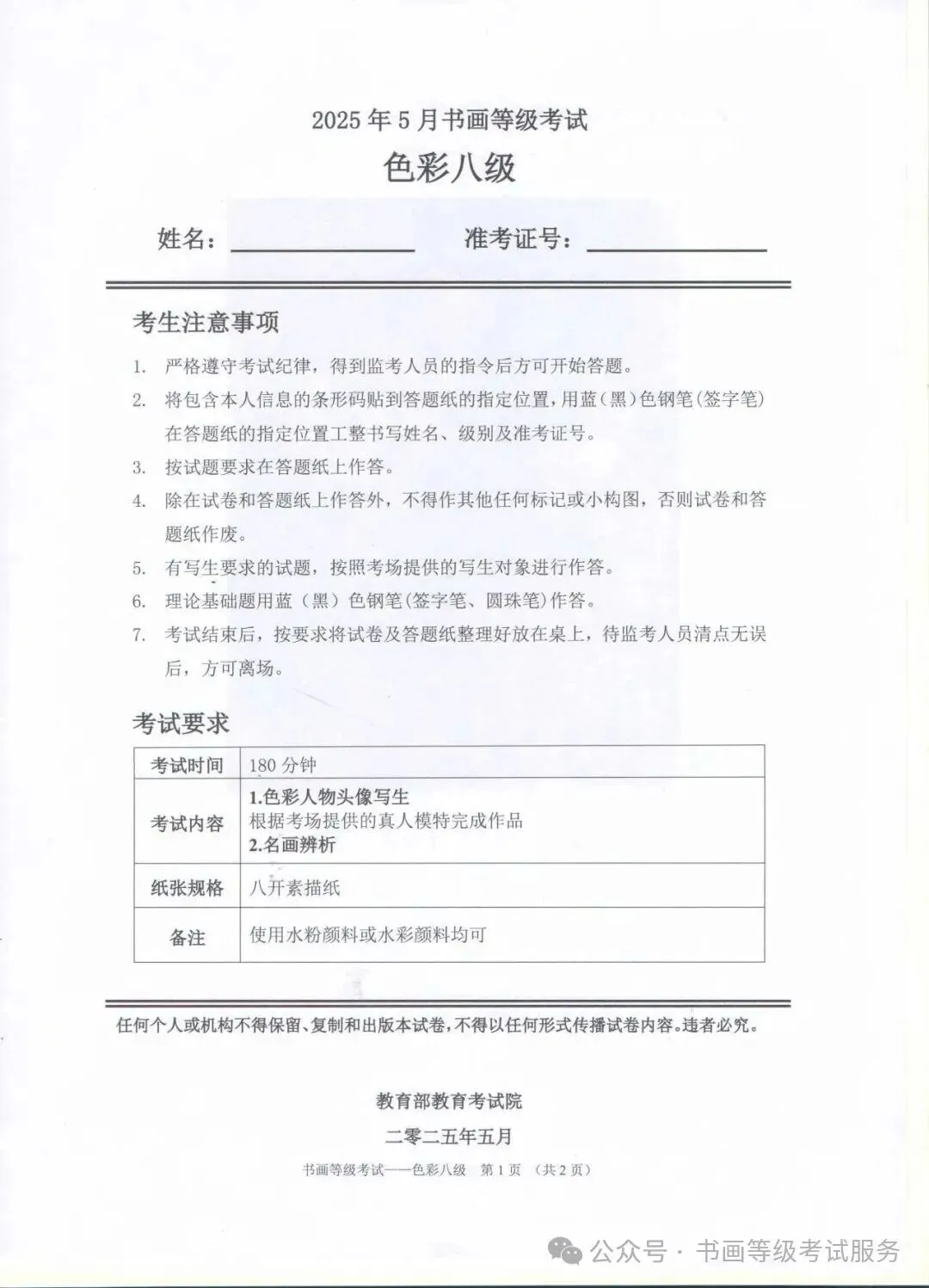 临沂市考试中心办公室为了协助考试点、中小学校、高职院校及书画培训机构,有针对性地培训及辅导报考参加教育部书画等级考试的考生,提高考级辅导老师专业水平和工作(辅导)效率,整理出教育部考试中心书画等级考试2025年5月考试真题,辅助资料以供考前模拟练习使用,进而协助老师辅导及考生练习使用,确保教育部教育考试院书画等级考试临沂市考生整体通过率再次提高!