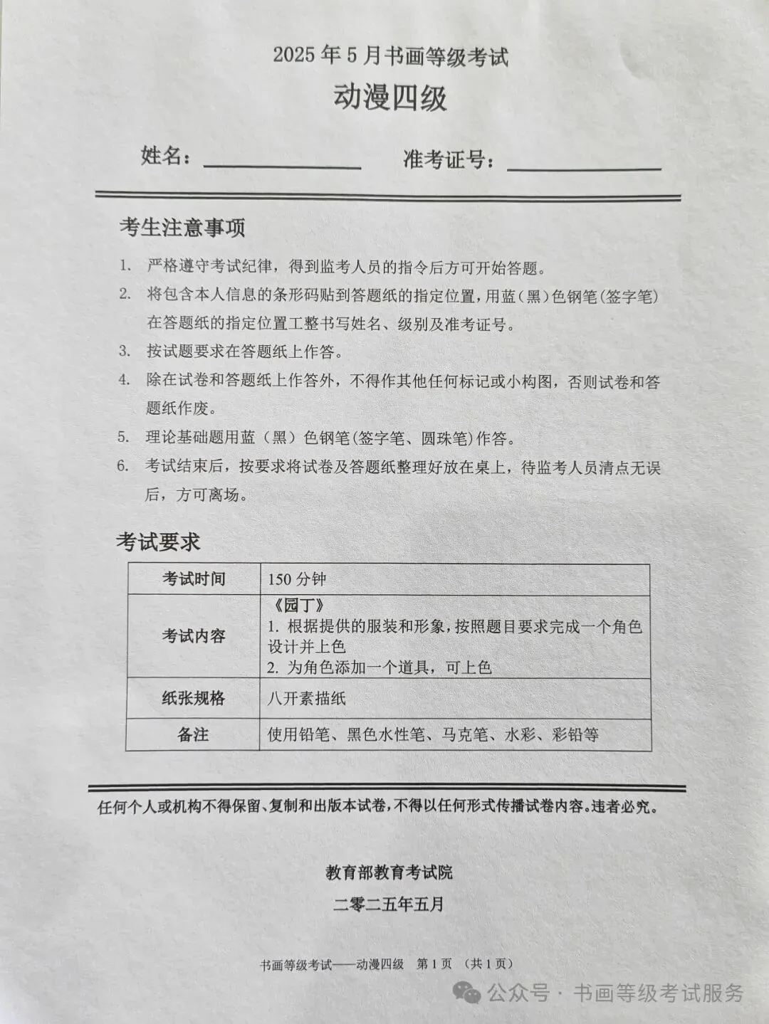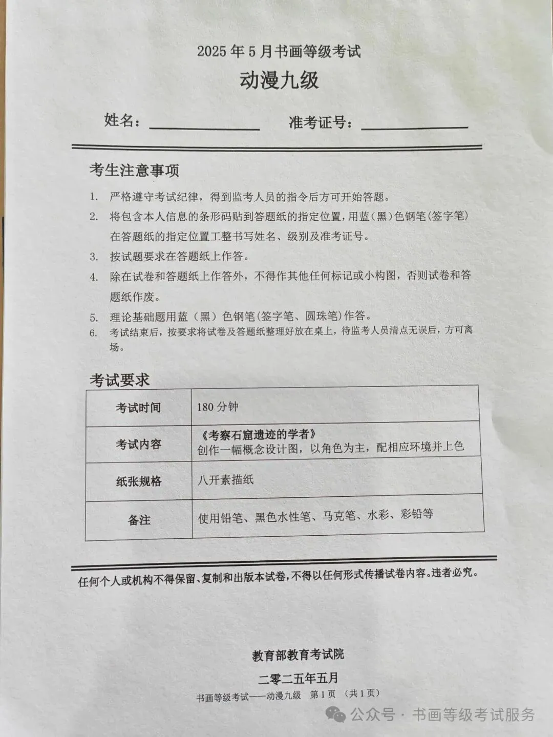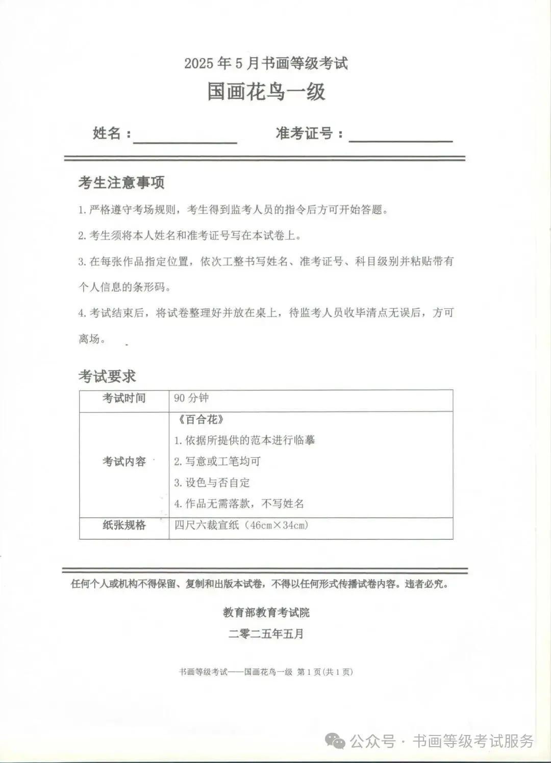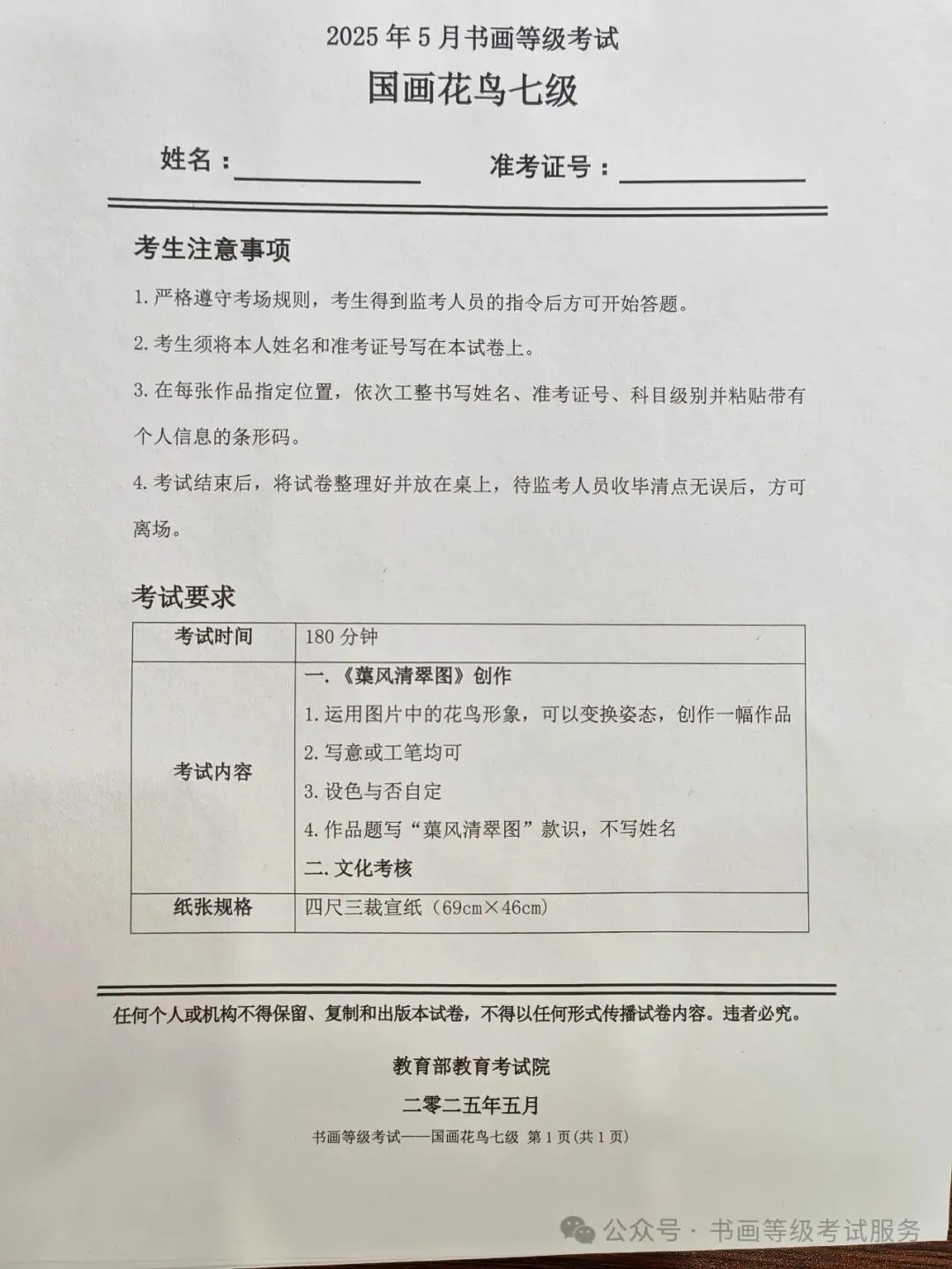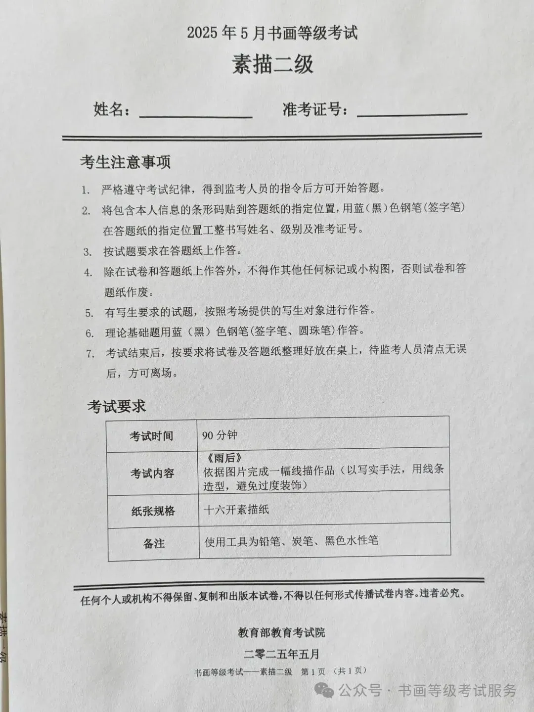 临沂市考试中心办公室为了协助考试点、中小学校、高职院校及书画培训机构,有针对性地培训及辅导报考参加教育部书画等级考试的考生,提高考级辅导老师专业水平和工作(辅导)效率,整理出教育部考试中心书画等级考试2025年5月考试真题,辅助资料以供考前模拟练习使用,进而协助老师辅导及考生练习使用,确保教育部教育考试院书画等级考试临沂市考生整体通过率再次提高!