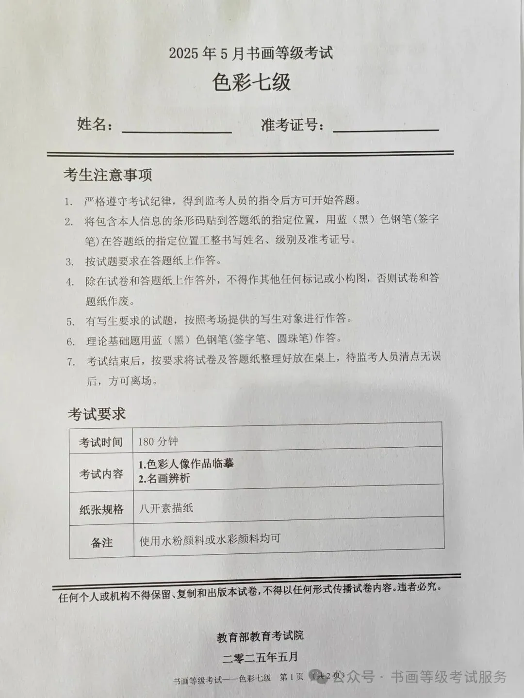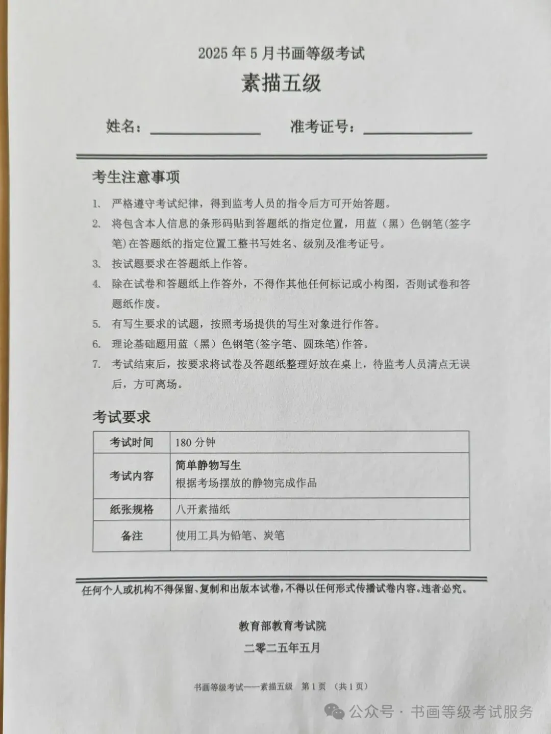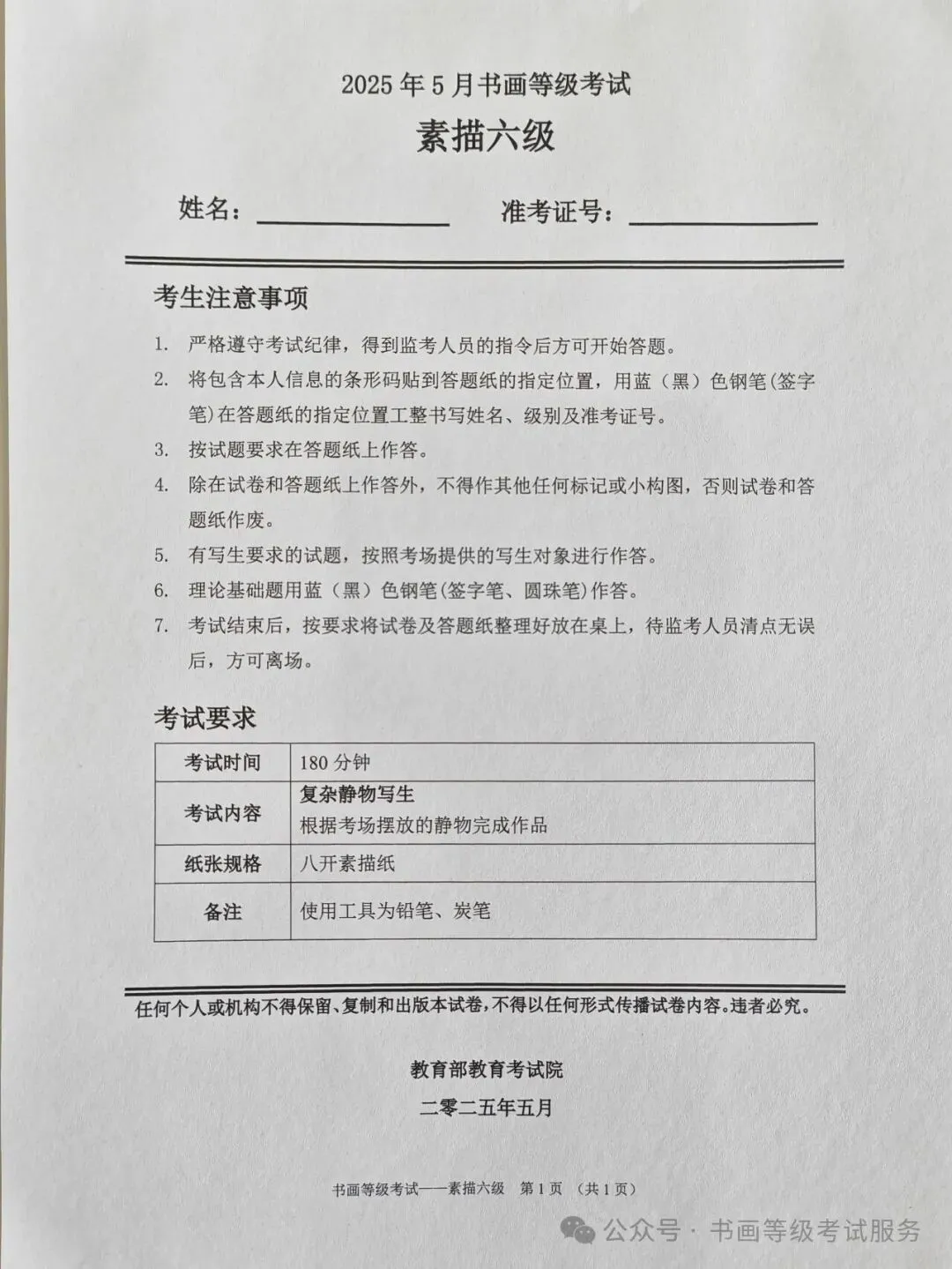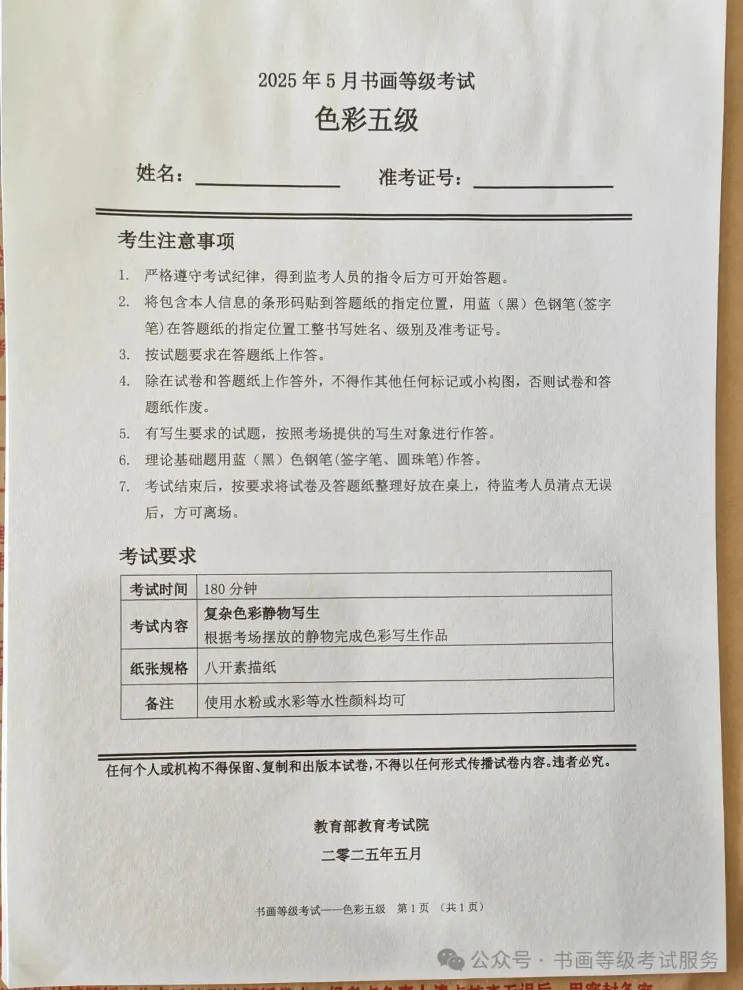 临沂市考试中心办公室为了协助考试点、中小学校、高职院校及书画培训机构,有针对性地培训及辅导报考参加教育部书画等级考试的考生,提高考级辅导老师专业水平和工作(辅导)效率,整理出教育部考试中心书画等级考试2025年5月考试真题,辅助资料以供考前模拟练习使用,进而协助老师辅导及考生练习使用,确保教育部教育考试院书画等级考试临沂市考生整体通过率再次提高!