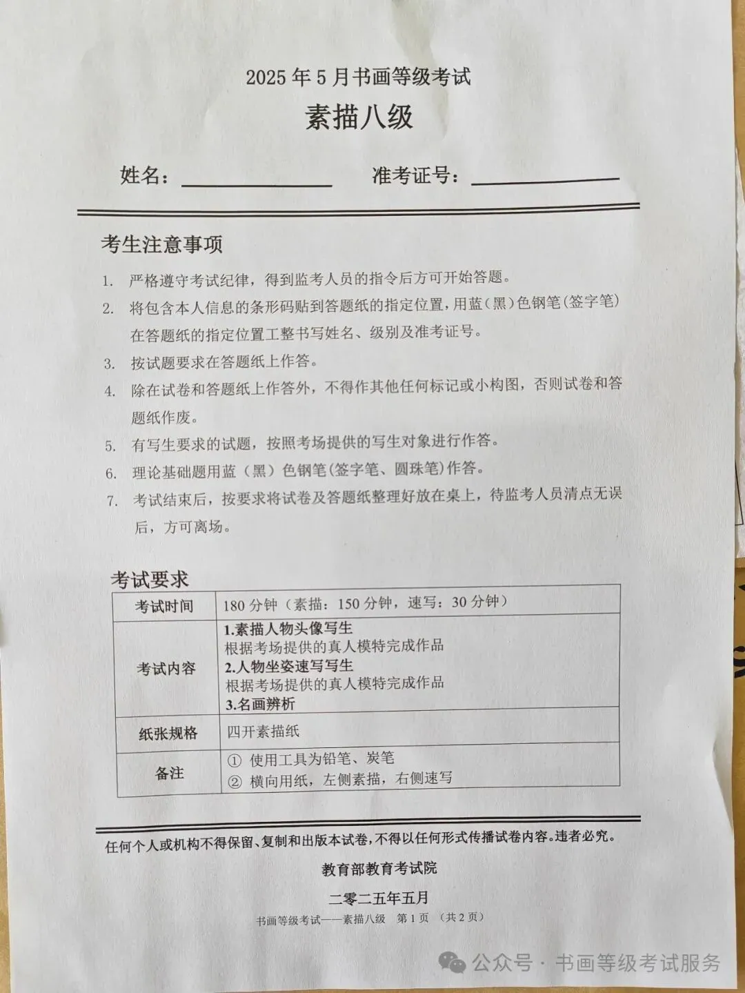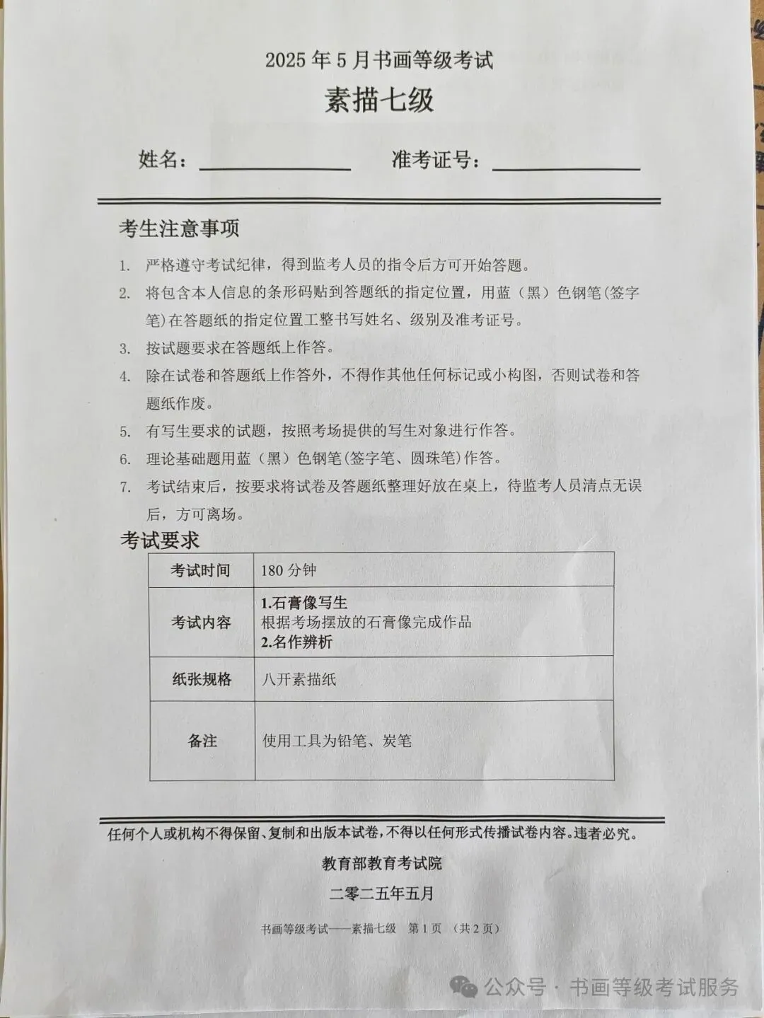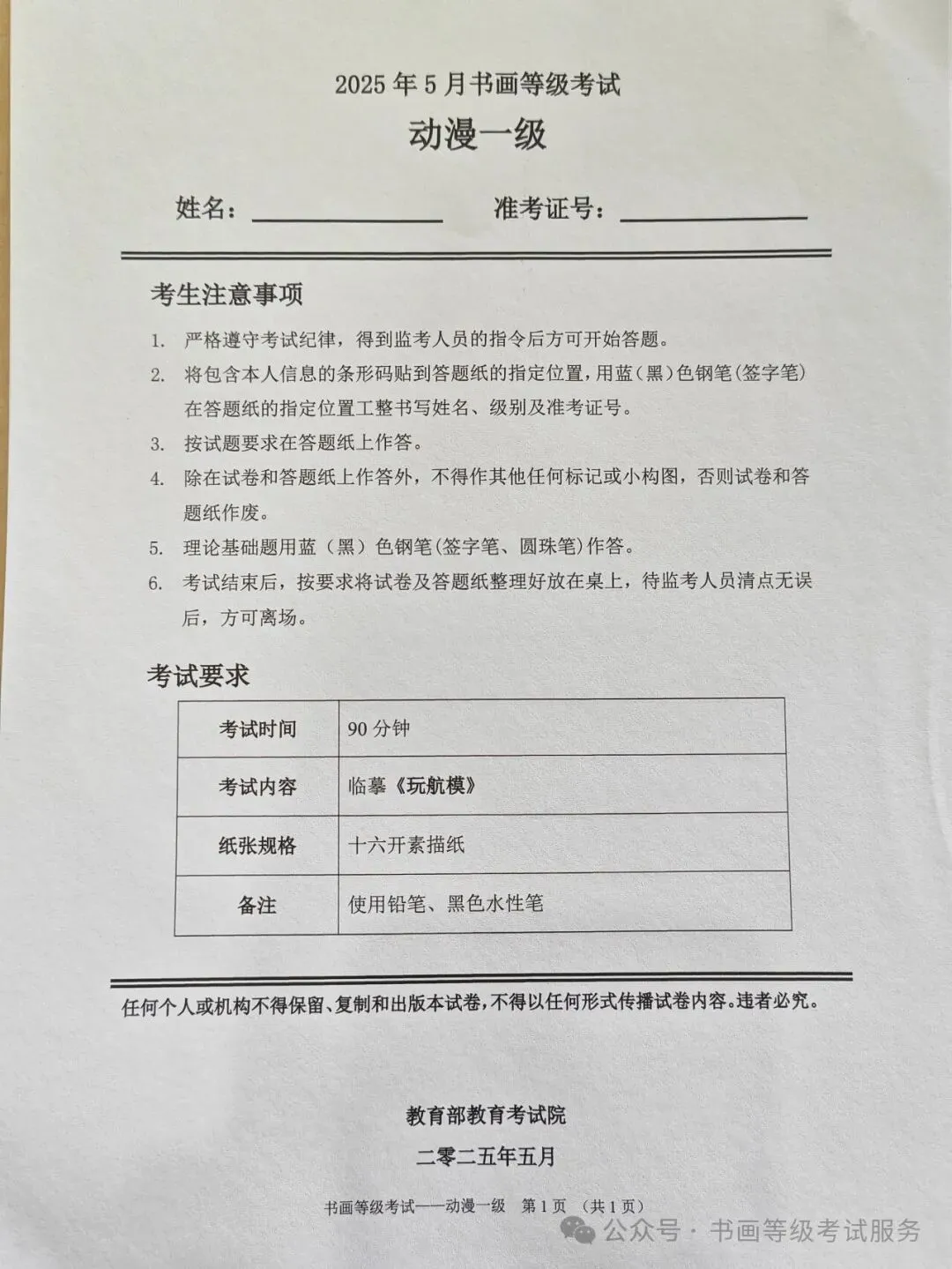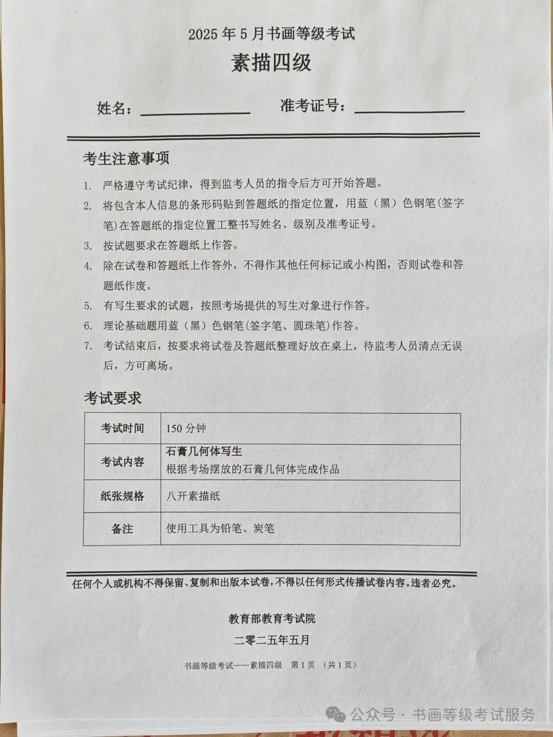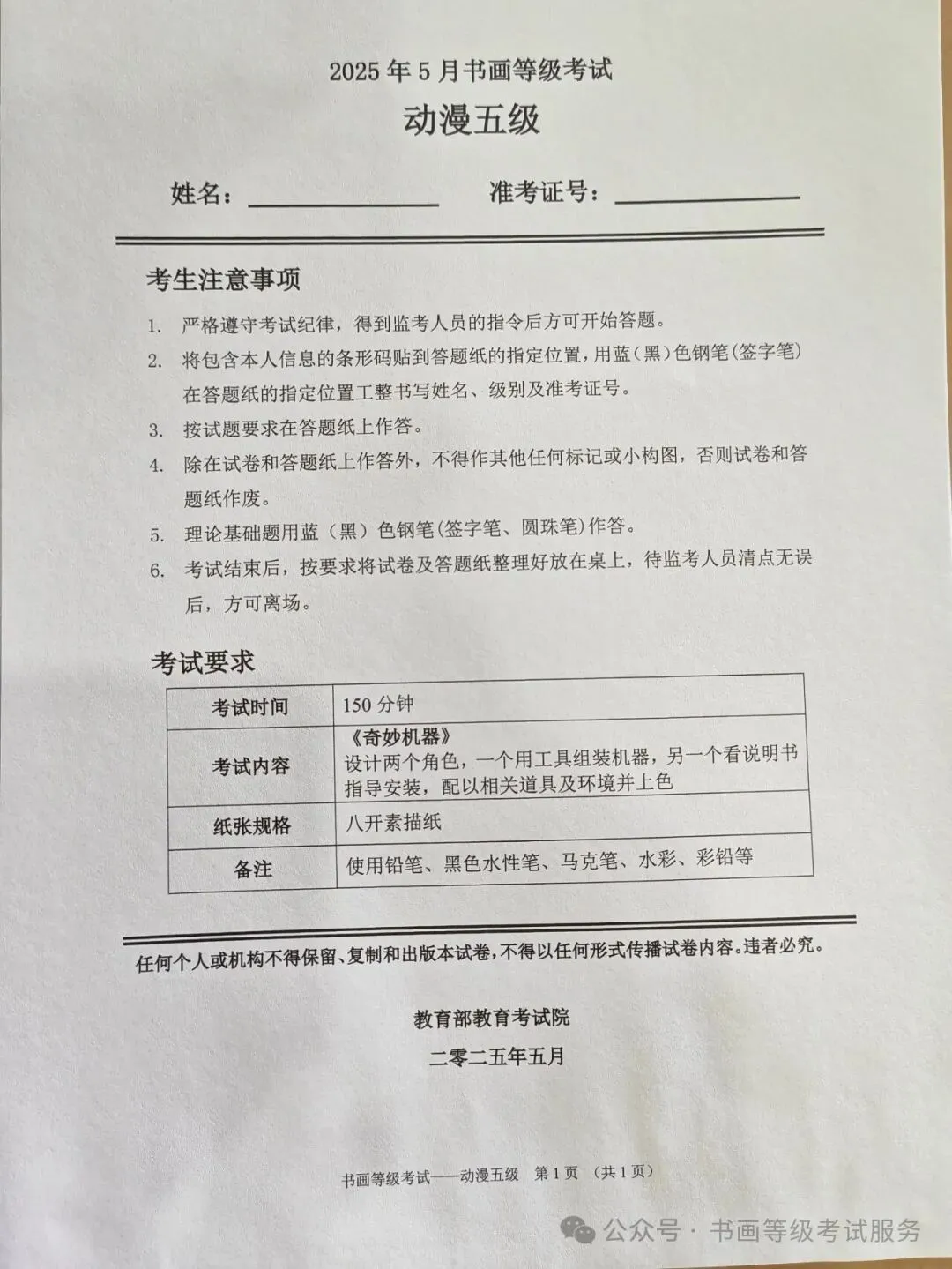 临沂市考试中心办公室为了协助考试点、中小学校、高职院校及书画培训机构,有针对性地培训及辅导报考参加教育部书画等级考试的考生,提高考级辅导老师专业水平和工作(辅导)效率,整理出教育部考试中心书画等级考试2025年5月考试真题,辅助资料以供考前模拟练习使用,进而协助老师辅导及考生练习使用,确保教育部教育考试院书画等级考试临沂市考生整体通过率再次提高!