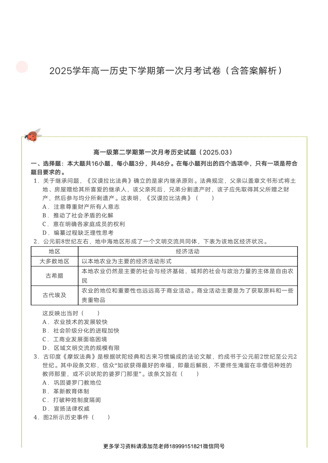 2025高一历史下学期第一次月考试卷附答案解析