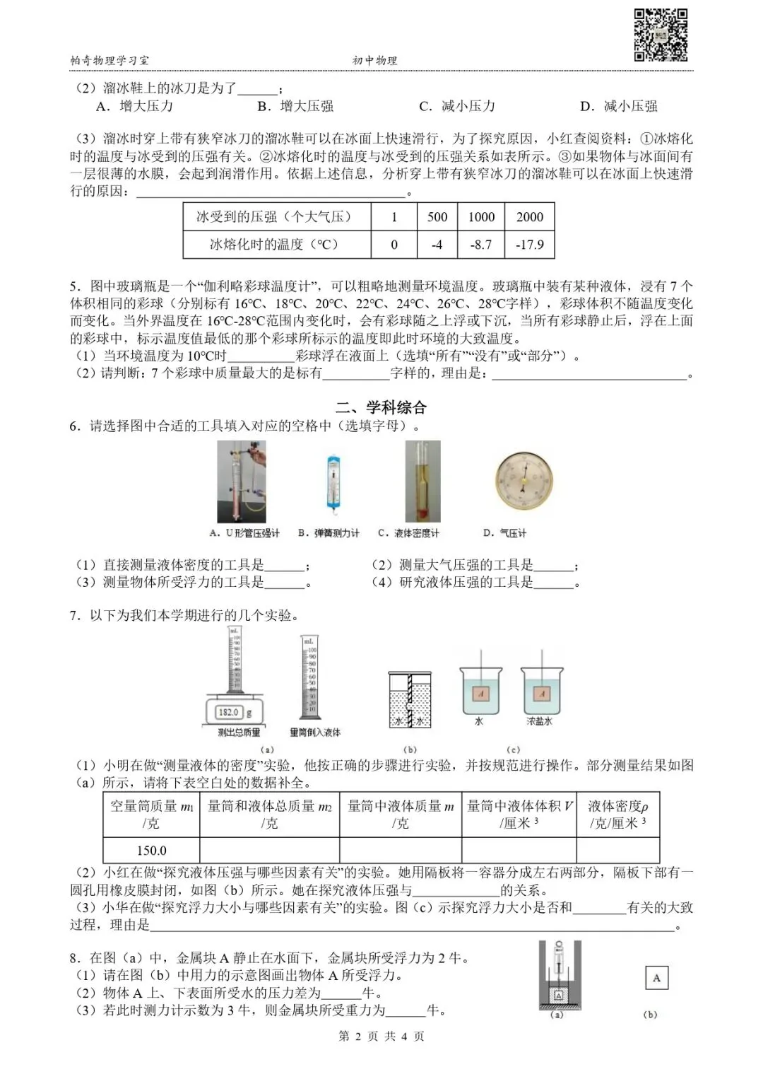 >【初中期中】黄浦区八年级(下)物理期中试卷(2025.4)