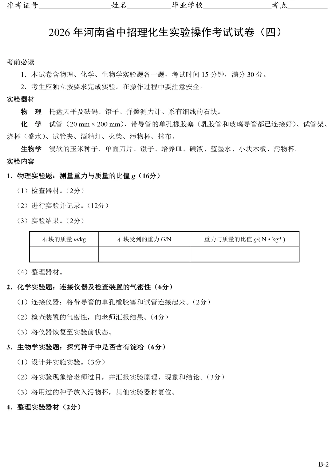 2026年河南省中招理化生实验操作考试ABCD试题+评分卡,目前确定的地市如下: