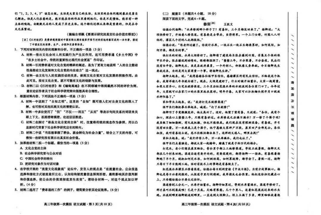 2026武汉高三三月统考(二调)语文试卷出炉!