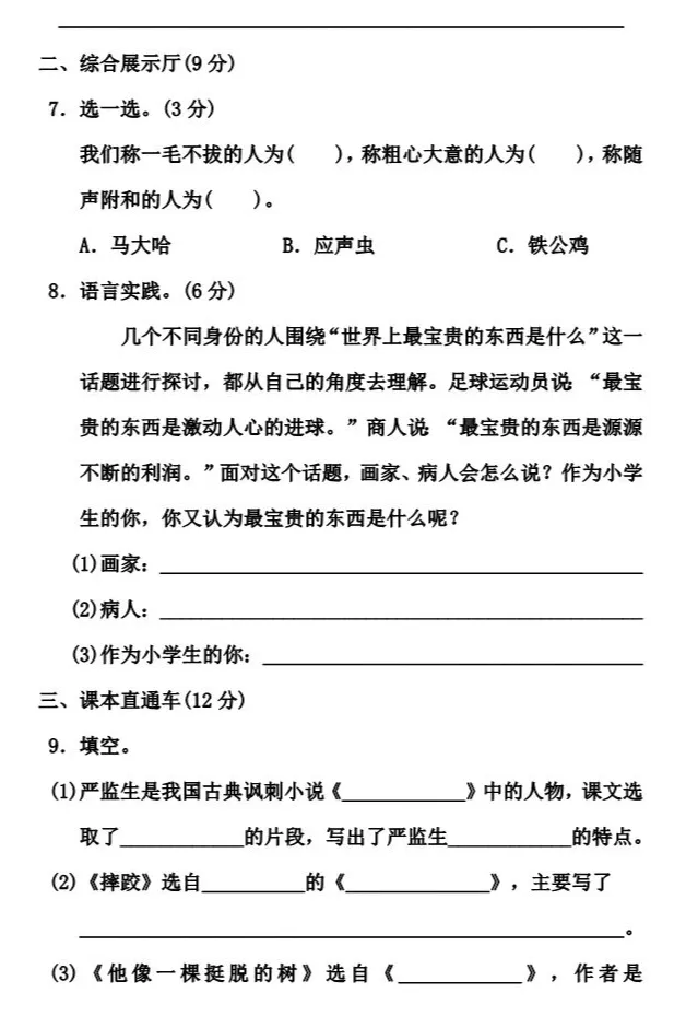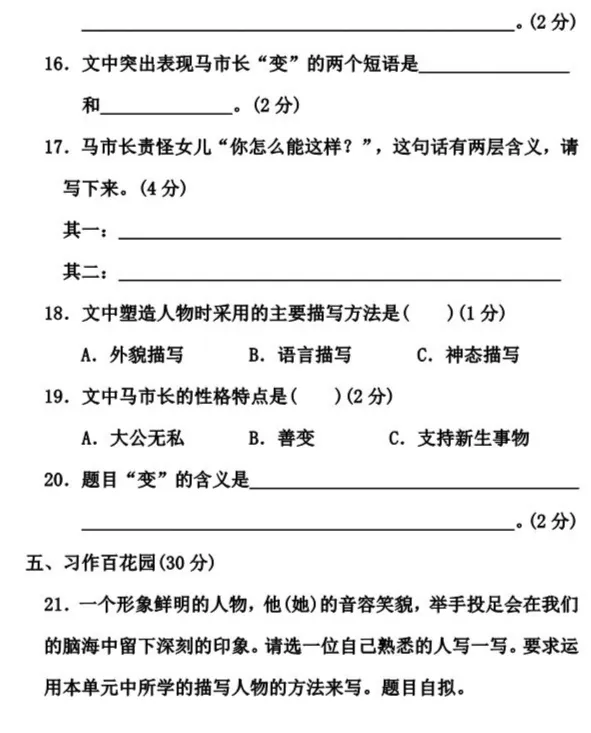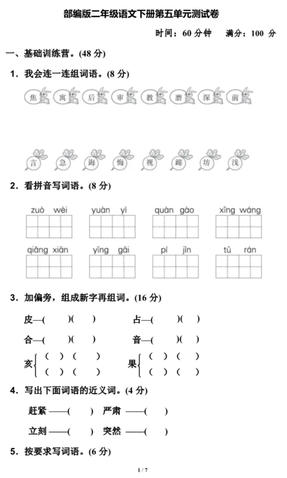 平凡教研团队给大家整理了统编语文1-6年级下册第5单元测试卷。