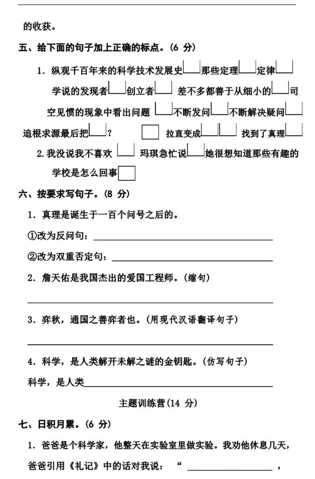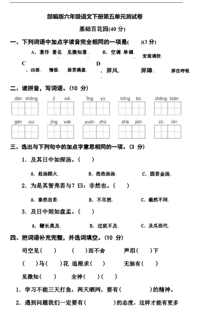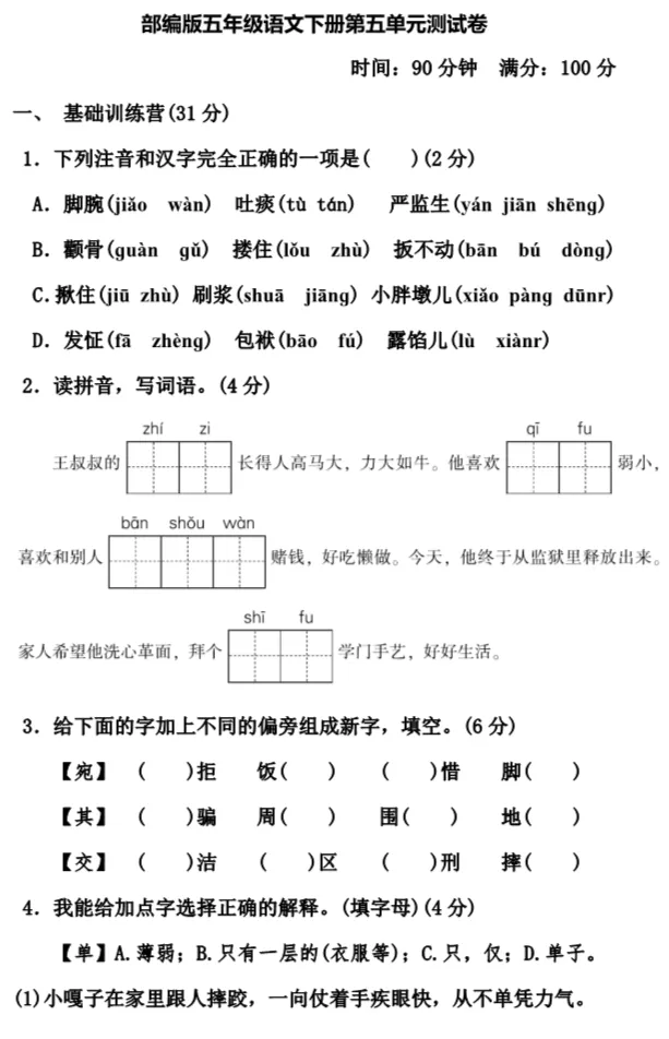 统编1-6年级语文(下册)第5单元精品试卷及答案36套丨可下载