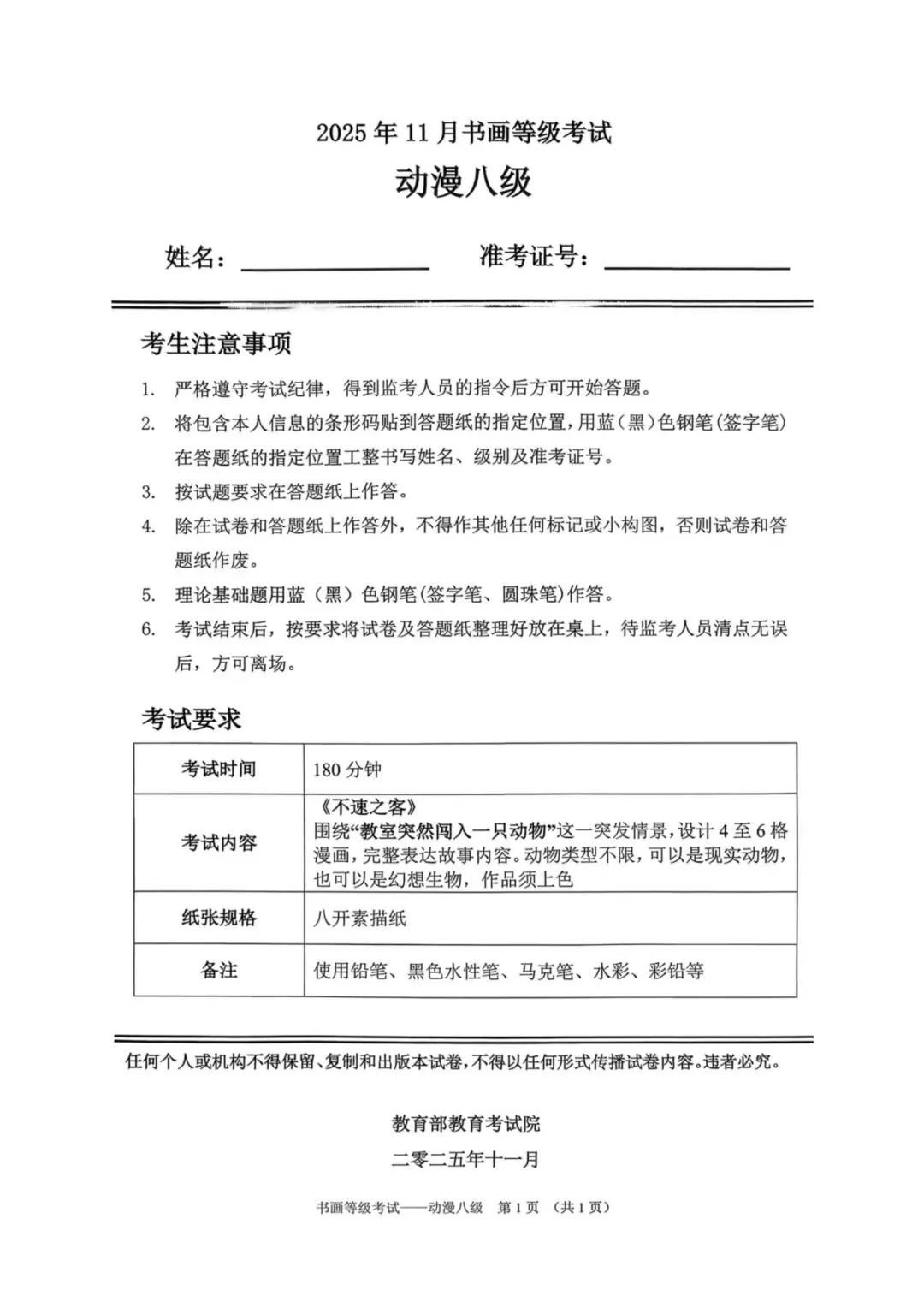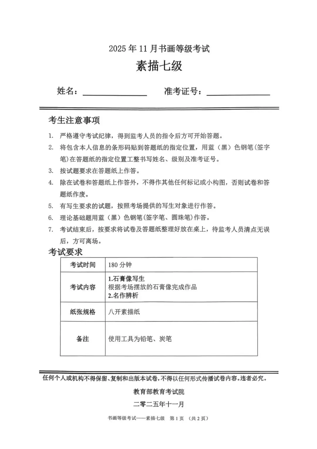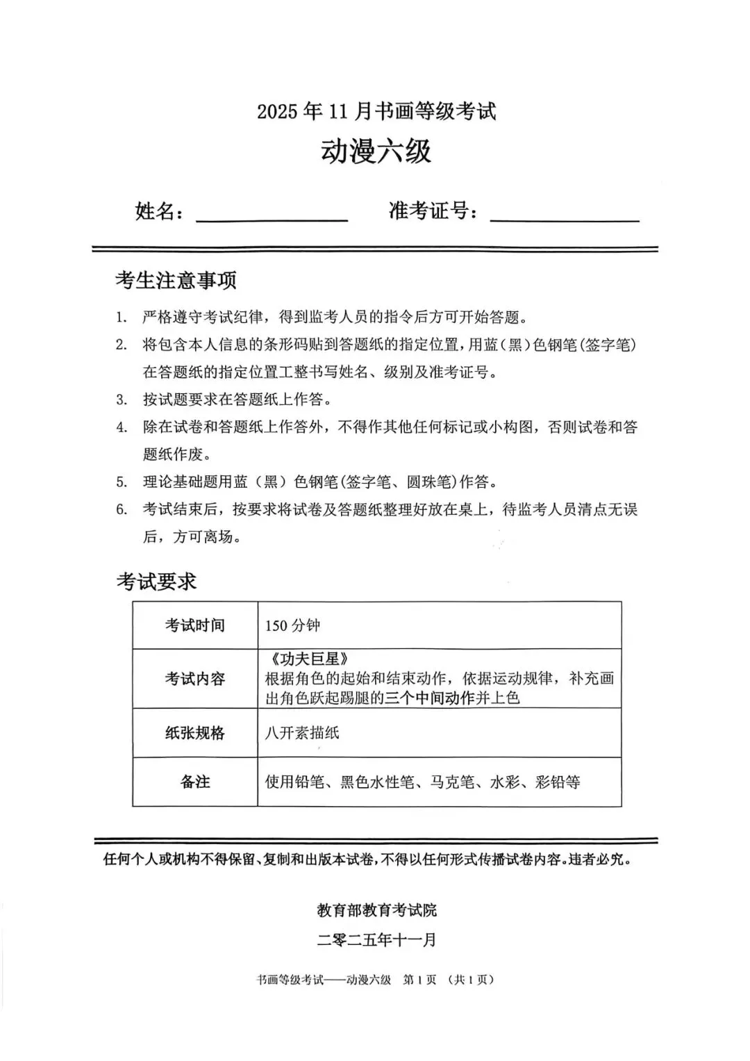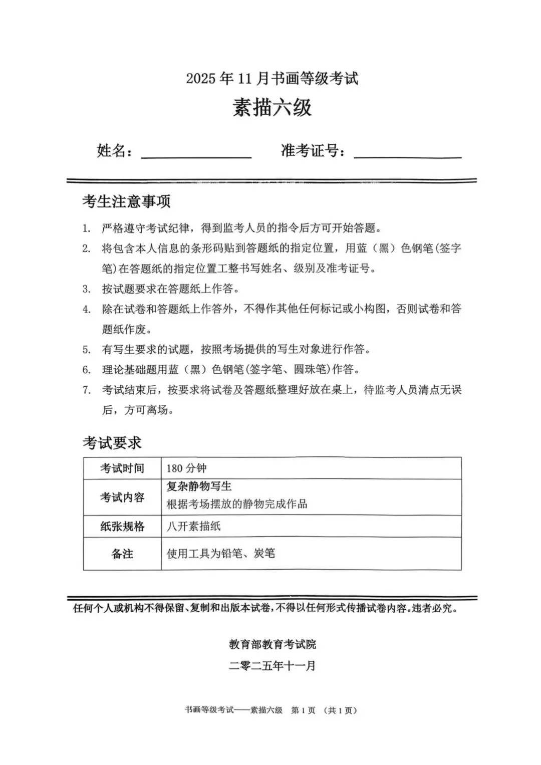 教育部书画等级考试2025年11月真题试卷(美术类)