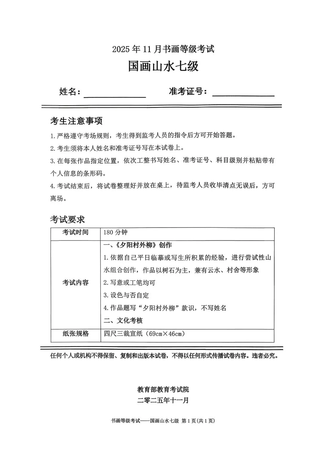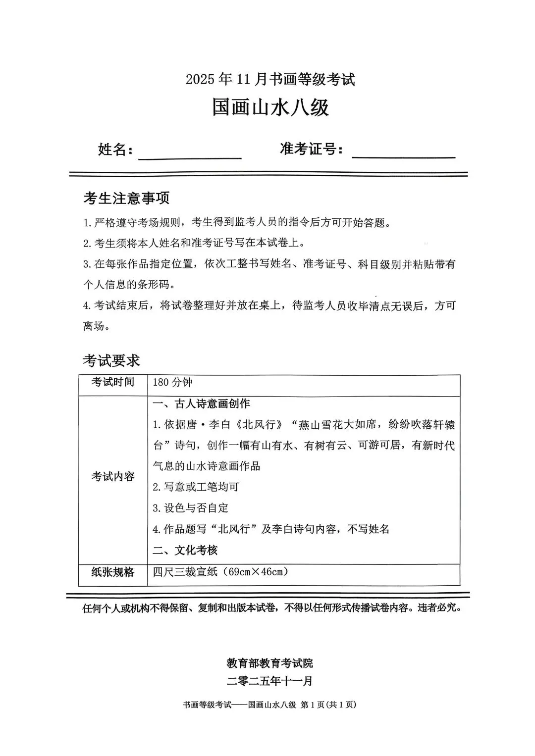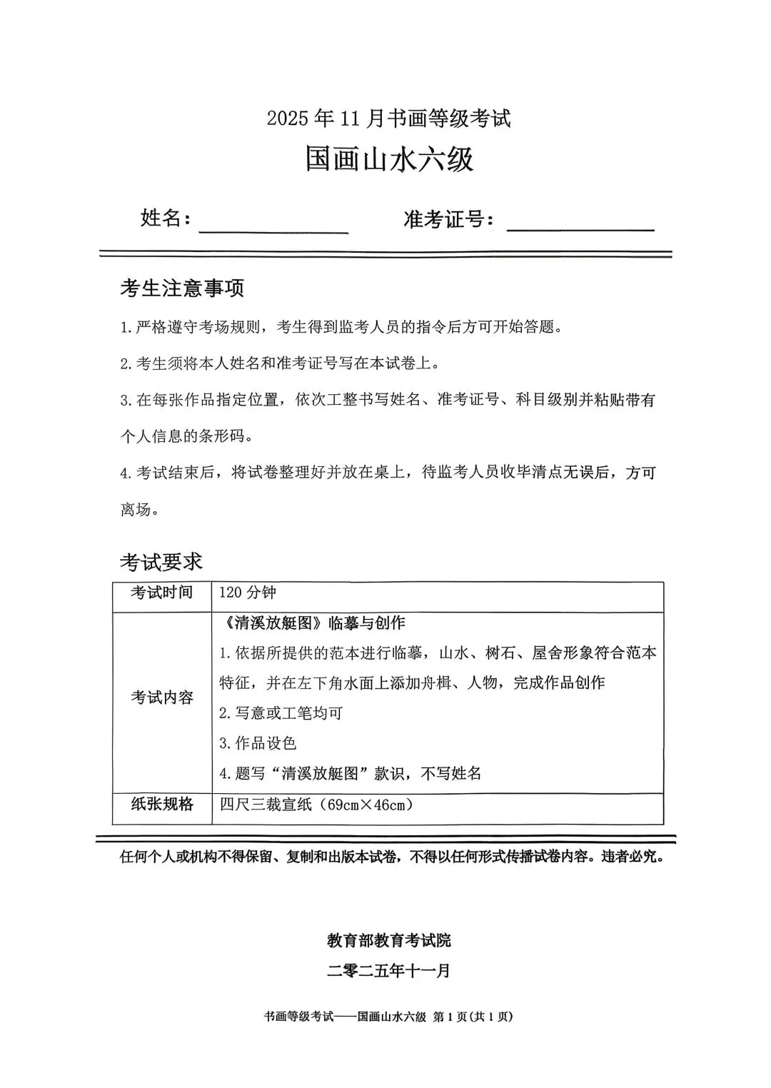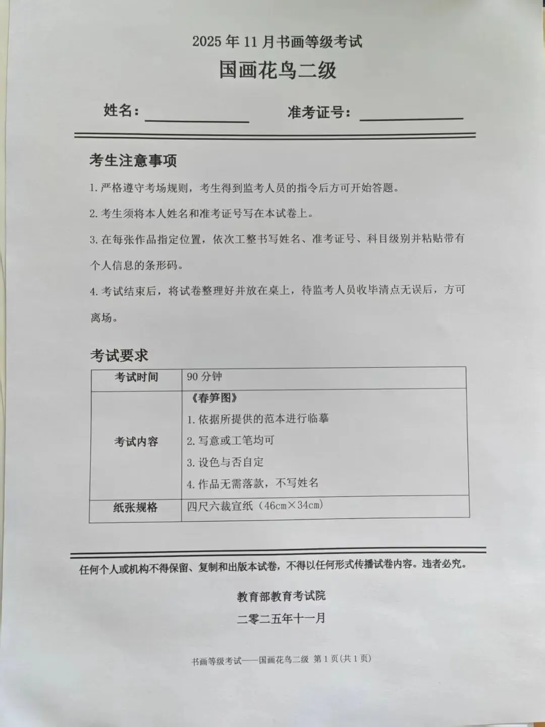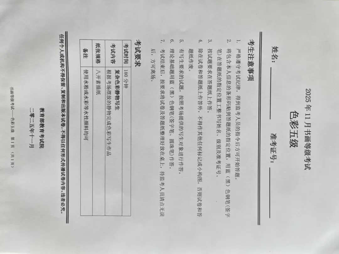 临沂市考试中心为了协助考试点、中小学校、高职院校及书画培训机构,有针对性地培训及辅导报考参加教育部书画等级考试的考生,提高考级辅导老师专业水平和工作(辅导)效率,整理出教育部考试中心书画等级考试2025年11月考试真题,辅助资料以供考前模拟练习使用,进而协助老师辅导及考生练习使用,确保教育部教育考试院书画等级考试临沂市考生整体通过率再次提高!