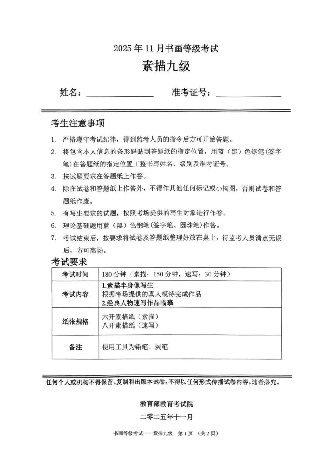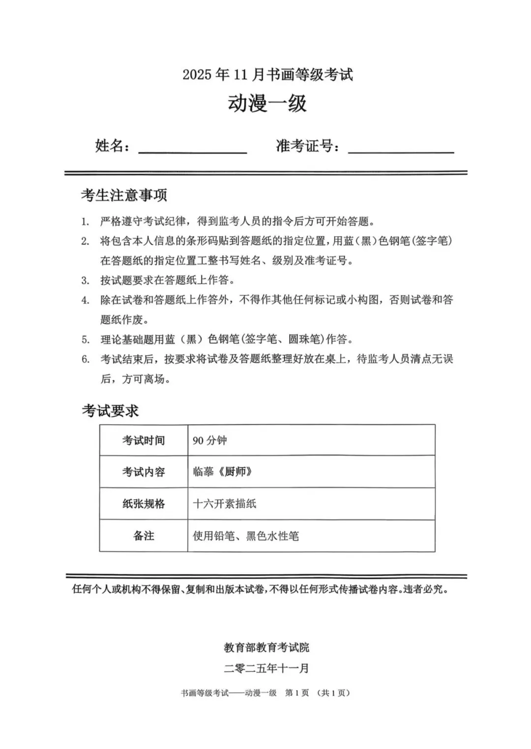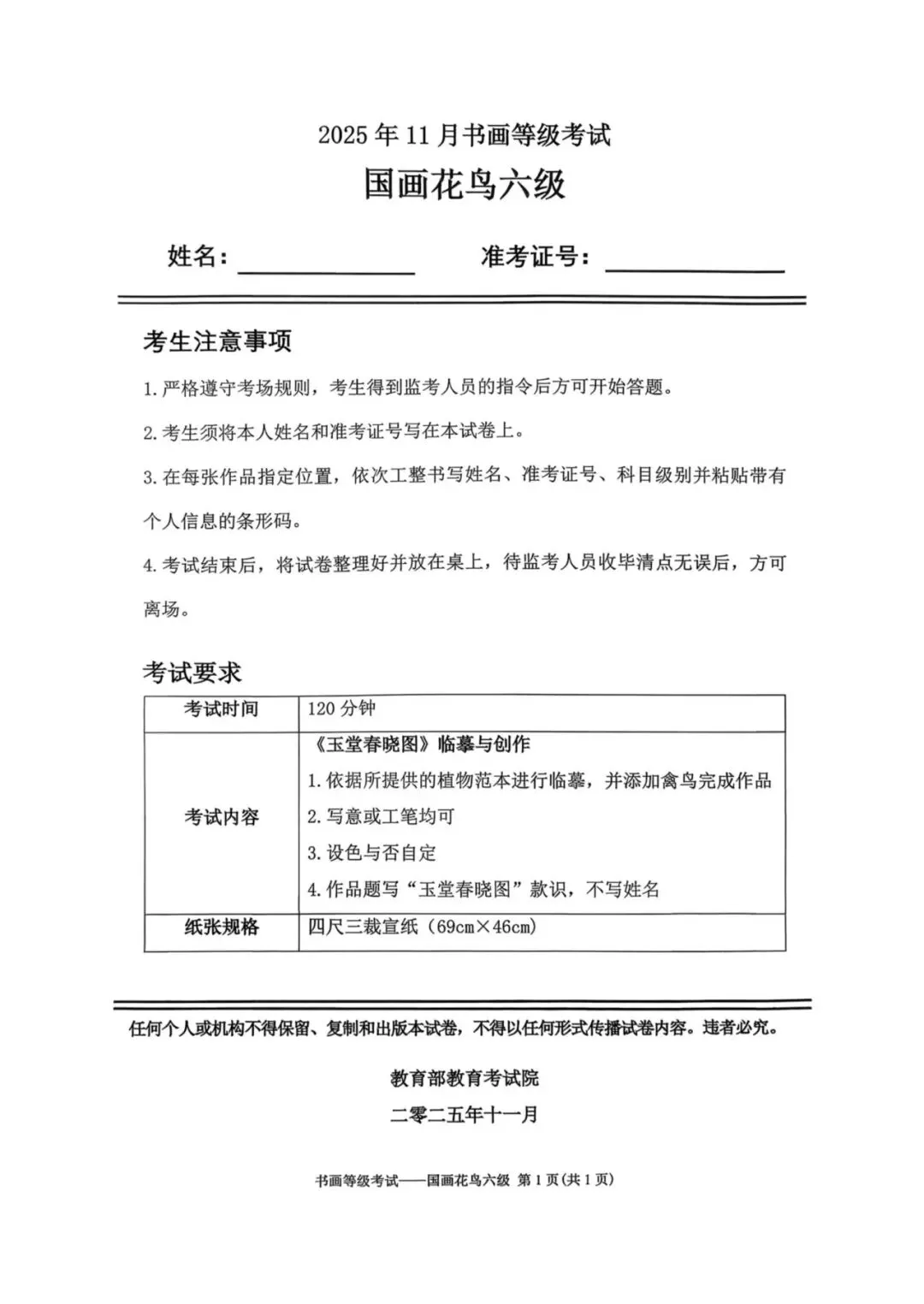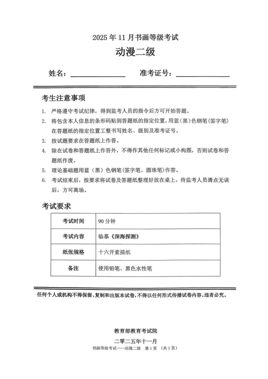 临沂市考试中心为了协助考试点、中小学校、高职院校及书画培训机构,有针对性地培训及辅导报考参加教育部书画等级考试的考生,提高考级辅导老师专业水平和工作(辅导)效率,整理出教育部考试中心书画等级考试2025年11月考试真题,辅助资料以供考前模拟练习使用,进而协助老师辅导及考生练习使用,确保教育部教育考试院书画等级考试临沂市考生整体通过率再次提高!