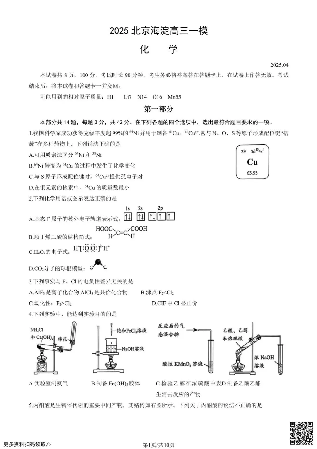 今天给大家分享的是2025北京海淀高三一模化学试卷(含答案),其他区域或学校的学生都可以练一练。近期会持续分享,欢迎大家多多关注,也可以把我们分享给更多人哦。