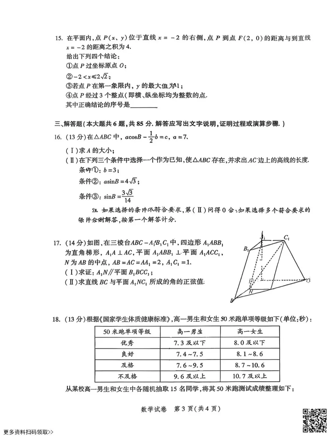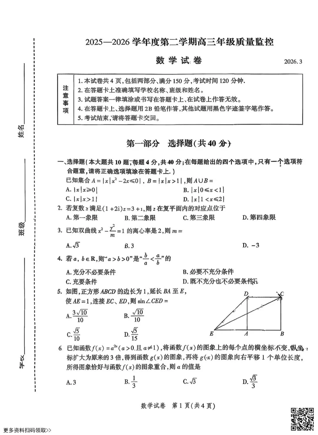 今天给大家分享的是2026北京平谷高三一模数学试卷(含答案),其他区域或学校的学生都可以练一练。近期会持续分享,欢迎大家多多关注,也可以把我们分享给更多人哦。