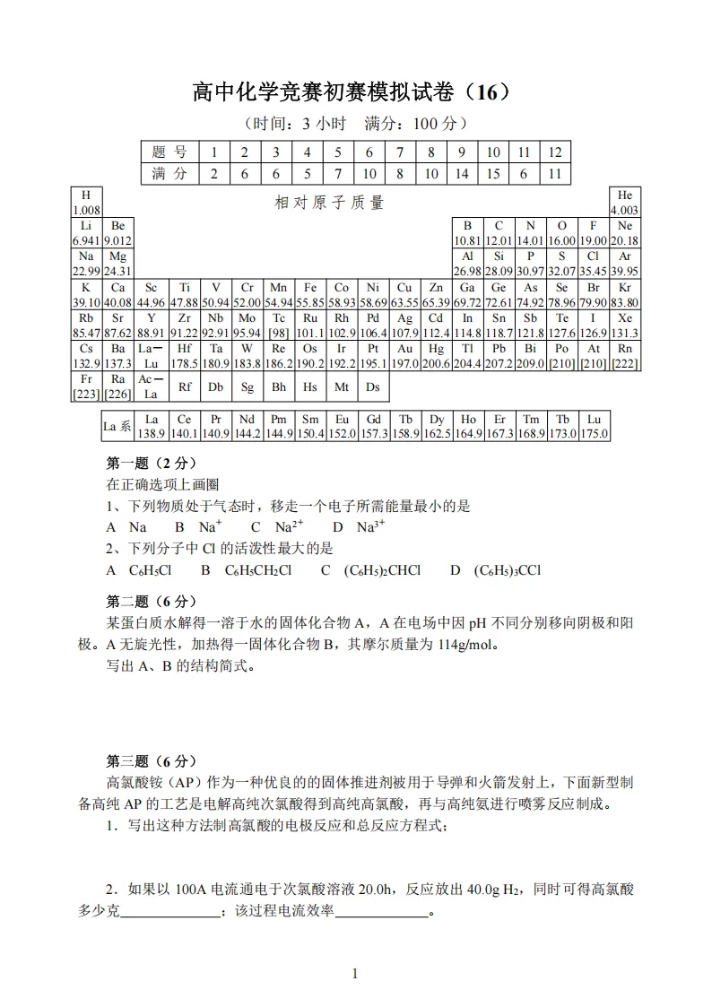 作者寄语:高中化学竞赛初赛模拟试卷(16),7天有效领取,手慢无!!!