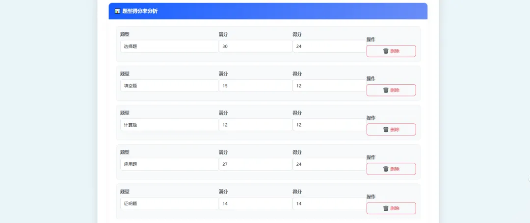 按照学生答题卡情况输入得分情况,同时更新得分图表