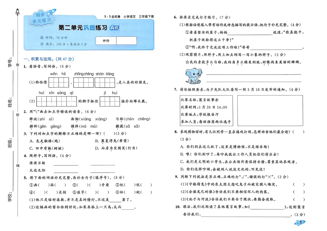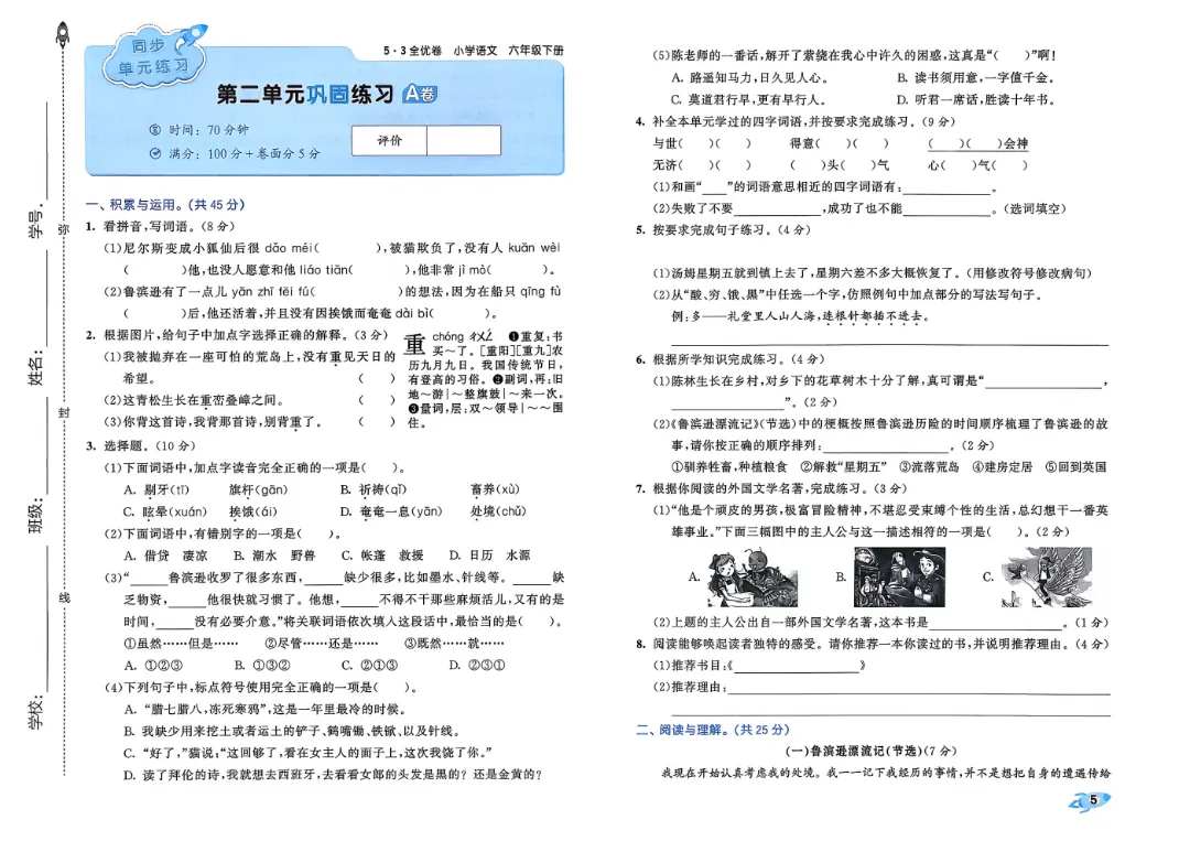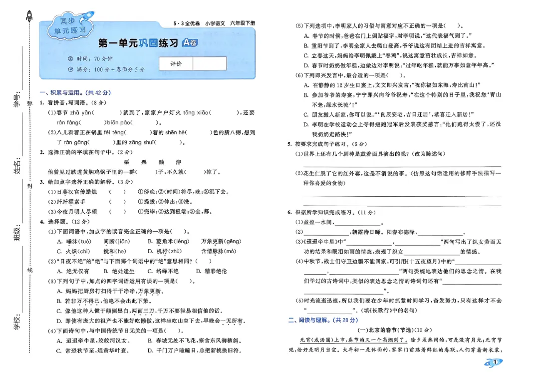 2026春1-6年级下册语文《单元试卷》汇总,可下载