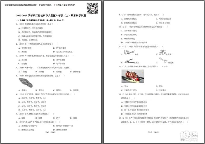 今天为大家准备的是家长上传的2022年杭州市八县区六上期末科学试卷,获取试卷完整电子版pdf免费下载及参考答案分析请点击文中的小程序!