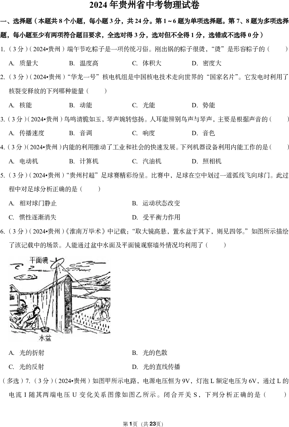 2024年贵州省中考物理试卷
