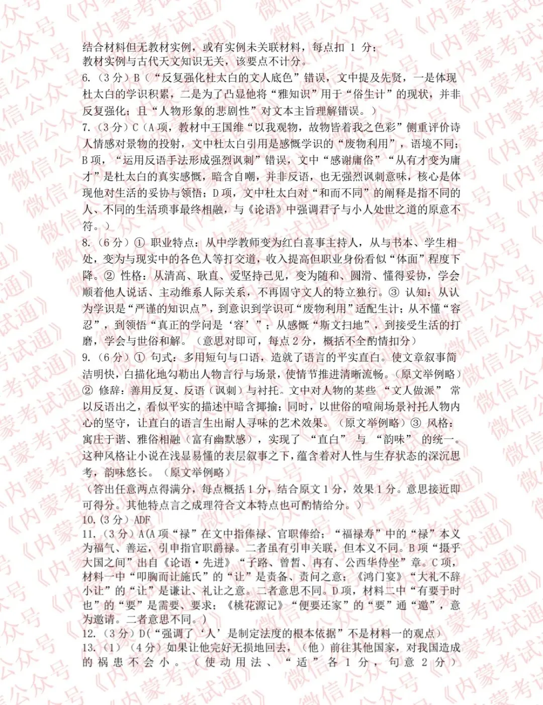 高三一模语文答案