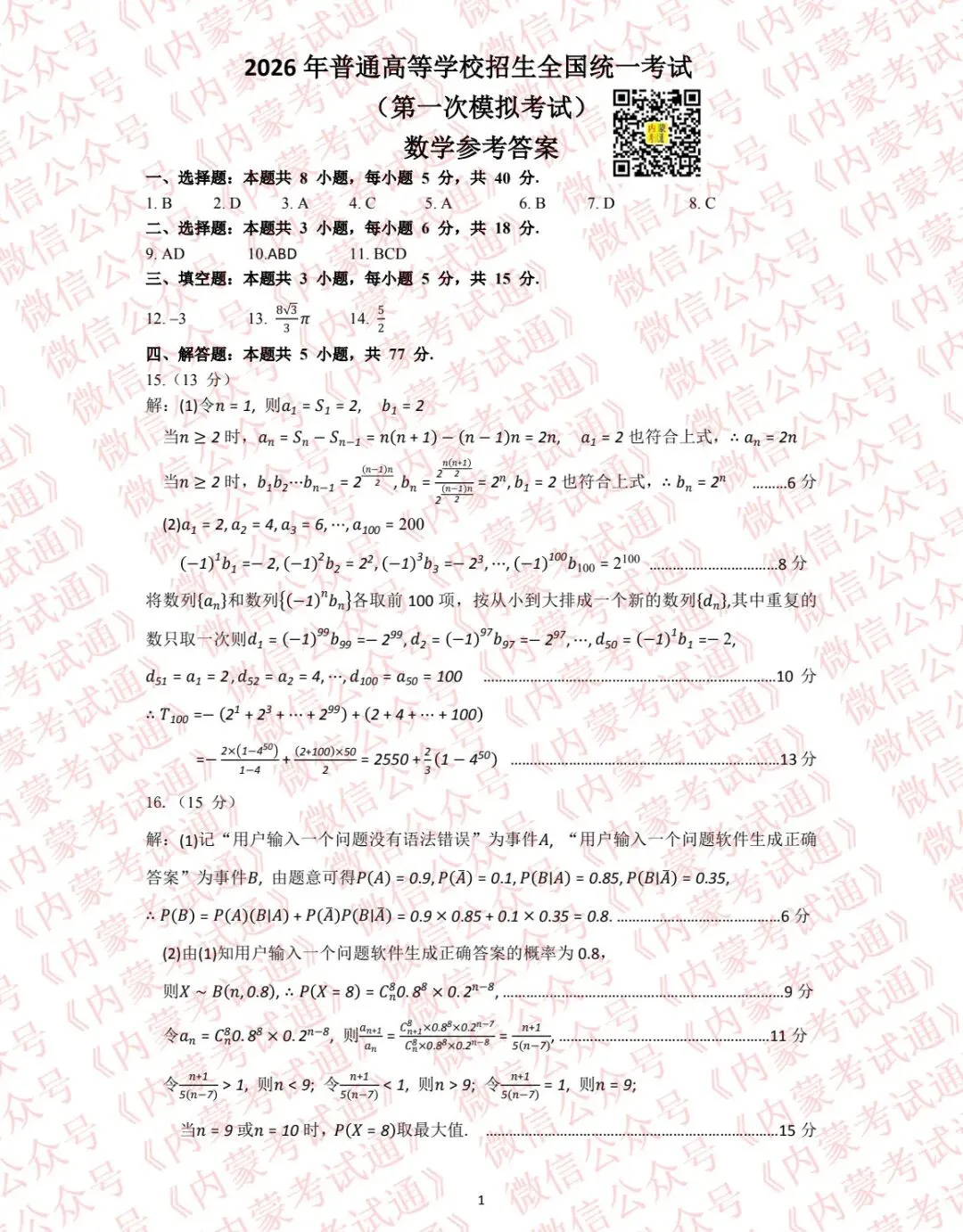 2026年内蒙古包头市高三年级一模考试试卷及答案,微信公众号《内蒙考试通》分享的2026年内蒙古包头市高三年级一模考试试卷及答案分享给所有同学和老师,希望能够帮助考生在2026年高考当中获得好成绩。建议考生关注公众号《内蒙考试通》第一时间获取最新试题及答案。