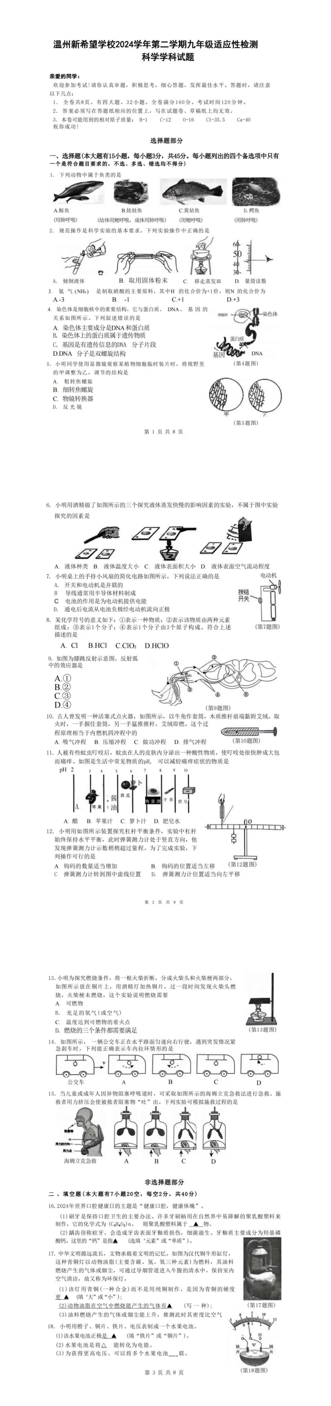 试卷收集|2024-2025学年3月温州新希望适应性检测