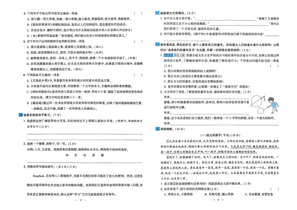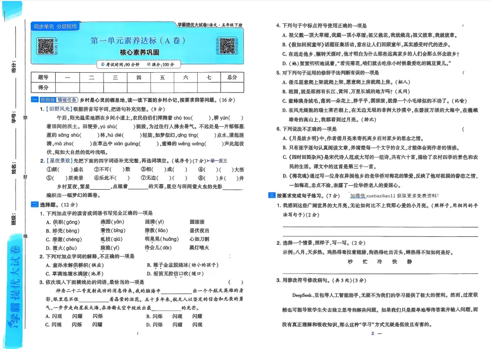 >2026春人教版语文《学霸提优大试卷》含答案 一二三四五六年级下册 电子版可打印
