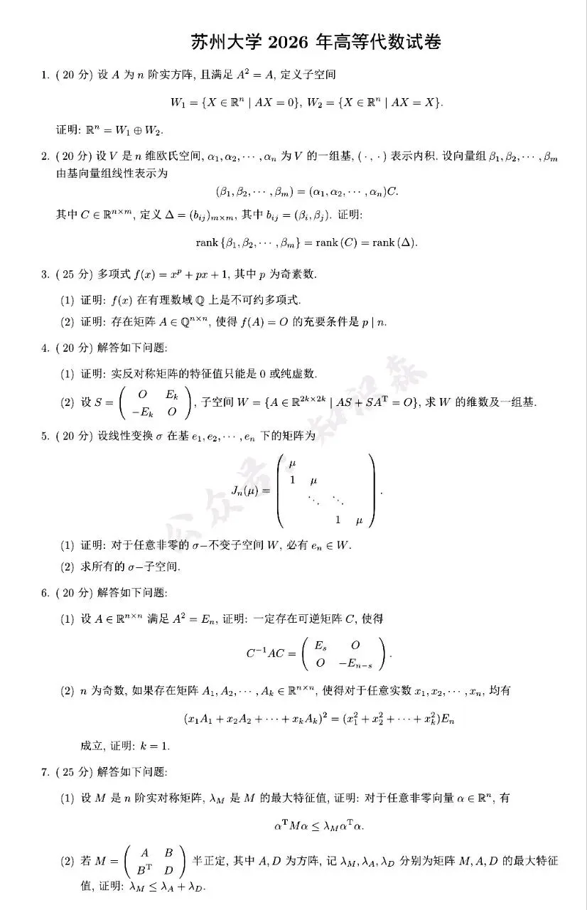 >苏州大学2026高等代数考研真题