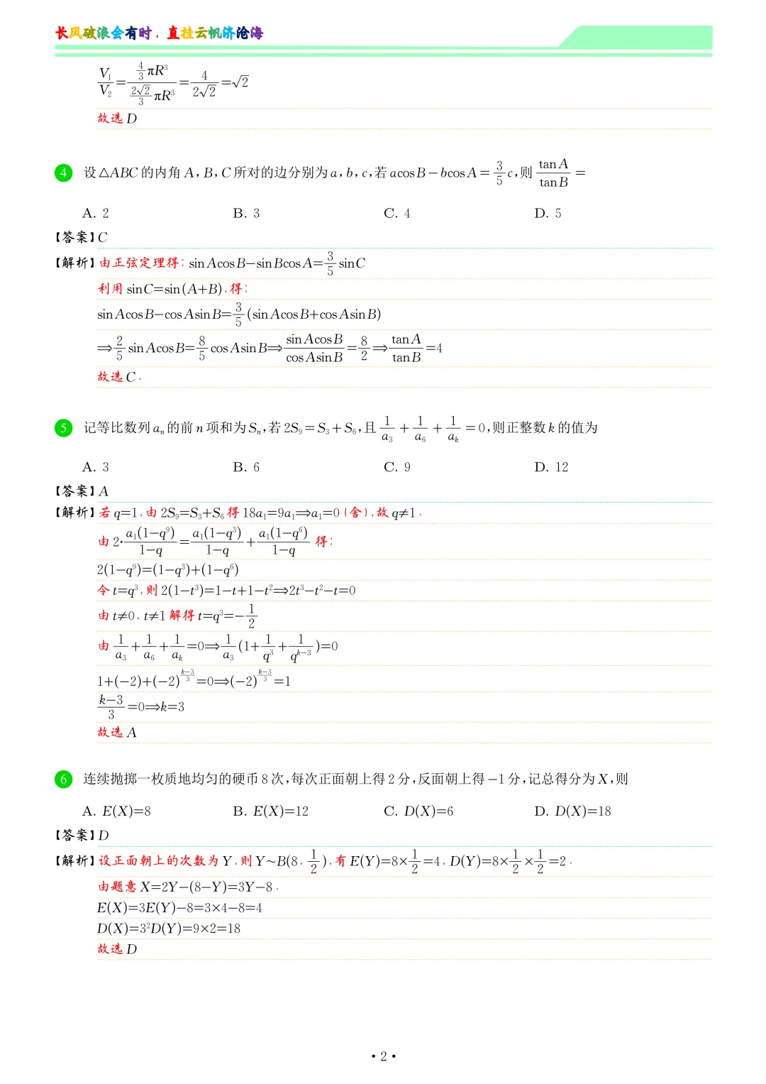武汉三月调研数学试卷与解析