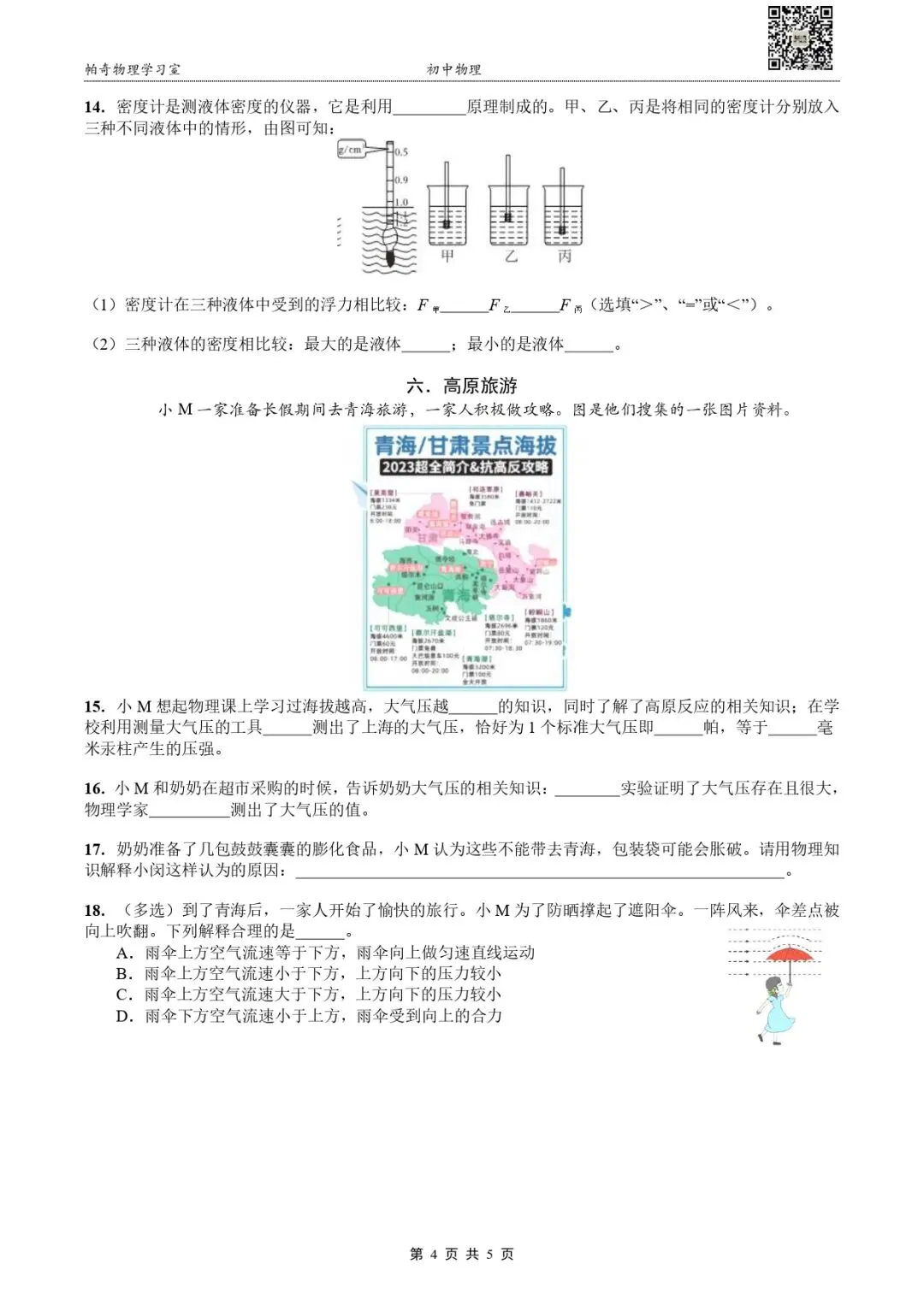 >【初中期中】闵行区八年级(下)物理期中试卷(2025.4)