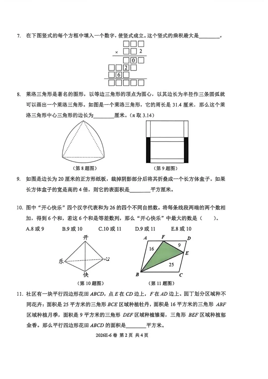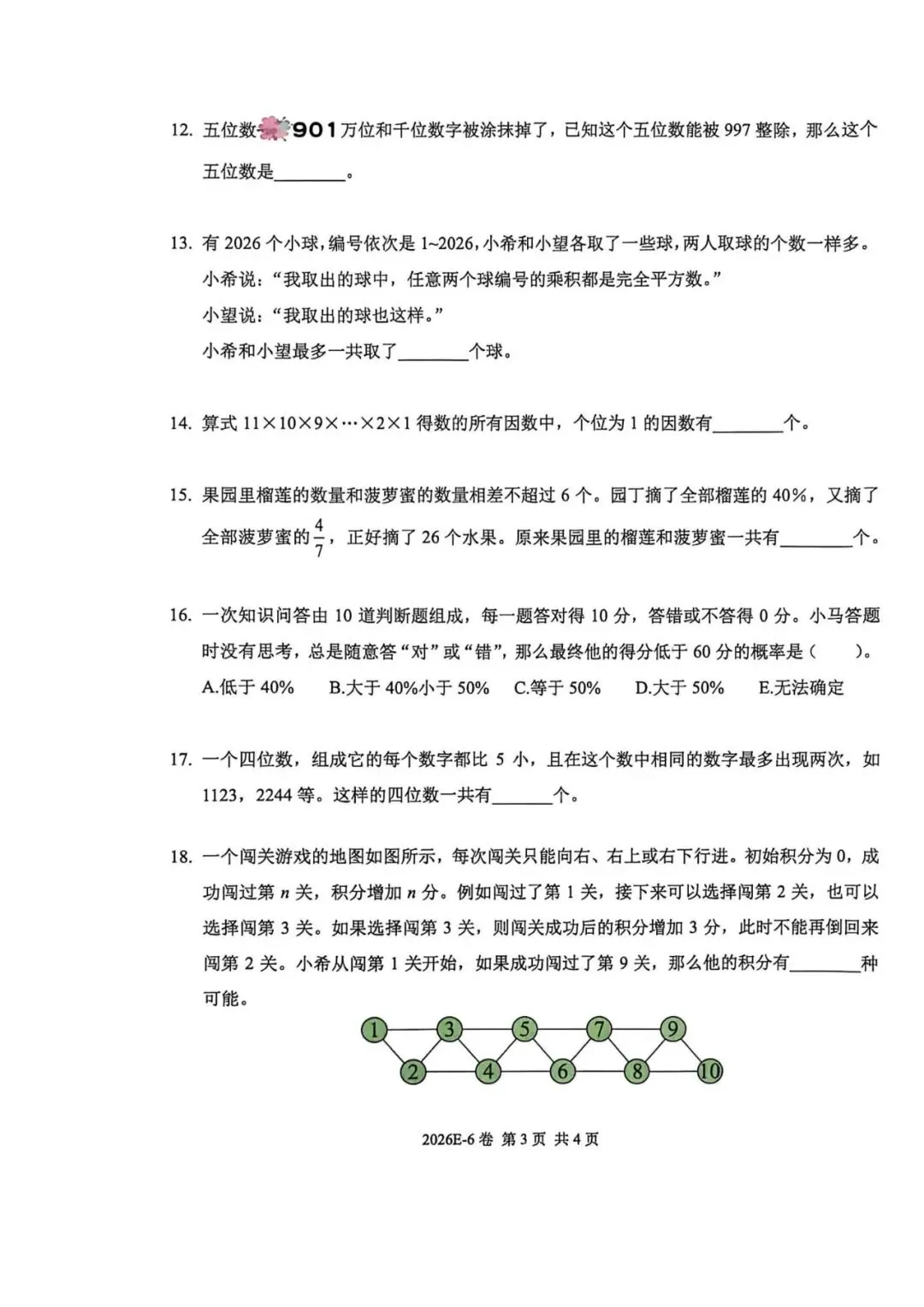 >2026希望杯(冬季)数学邀请赛试卷6年级组